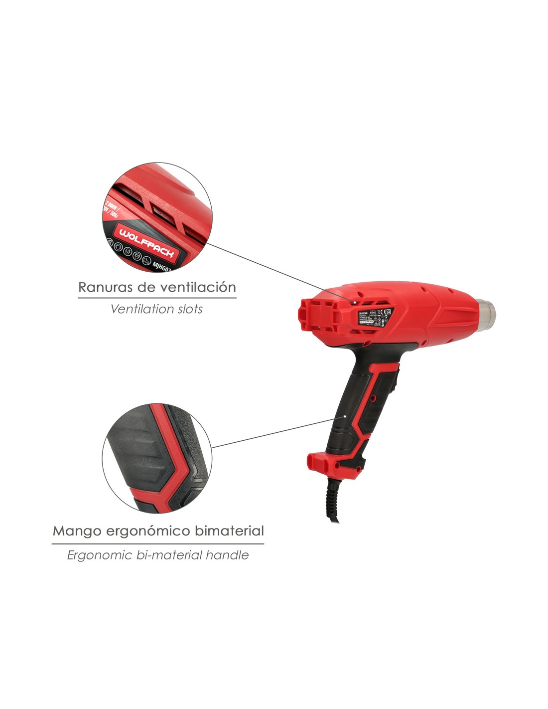- 2 configuraciones de calor 400º y 250 L. / min. - 600º y 500 L. / min.