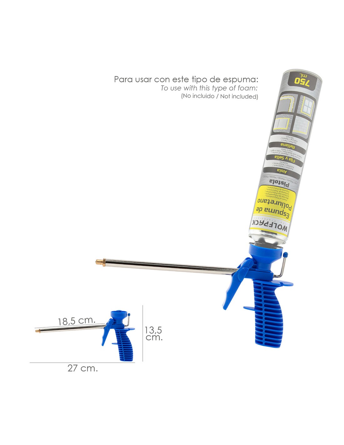 Pistola Para Espuma Poliuretano Regulable - Realizada en metal y plastico. - Con bloqueo de flujo de espuma - Mango ergonomico para una mayor comodidad. - Carga superior.