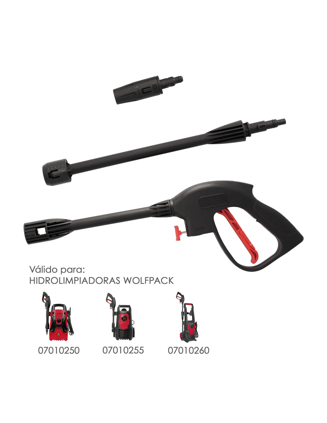 - Compatible con hidrolimpiadoras Wolfpack: 07010265, 07010260, 07010255, 07010250.