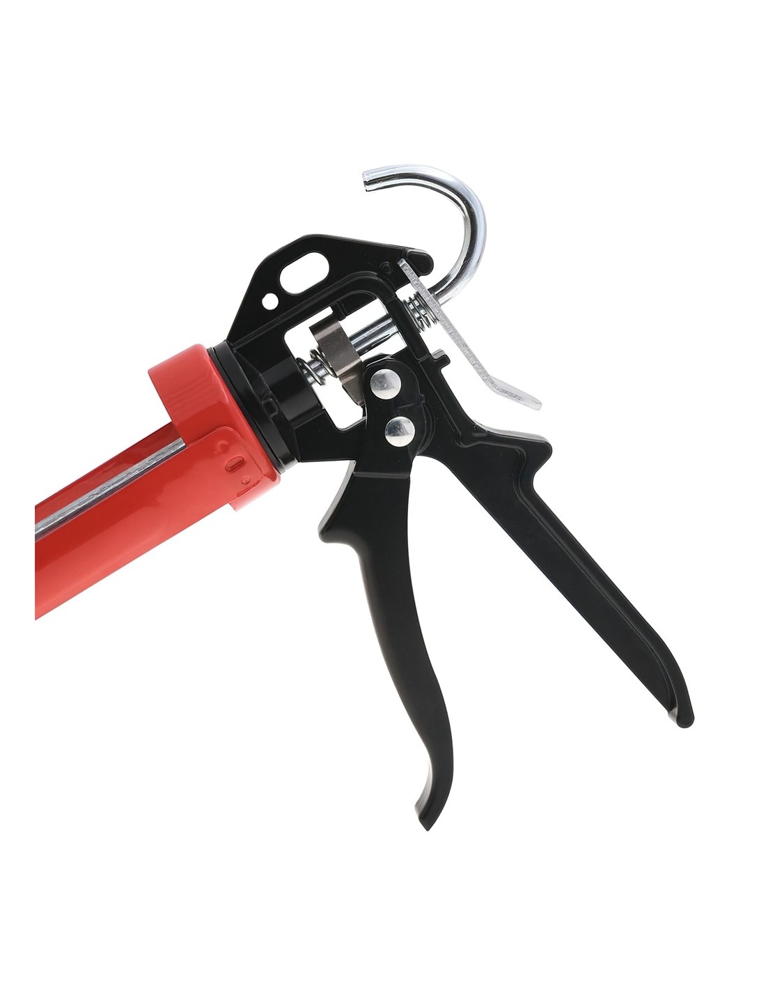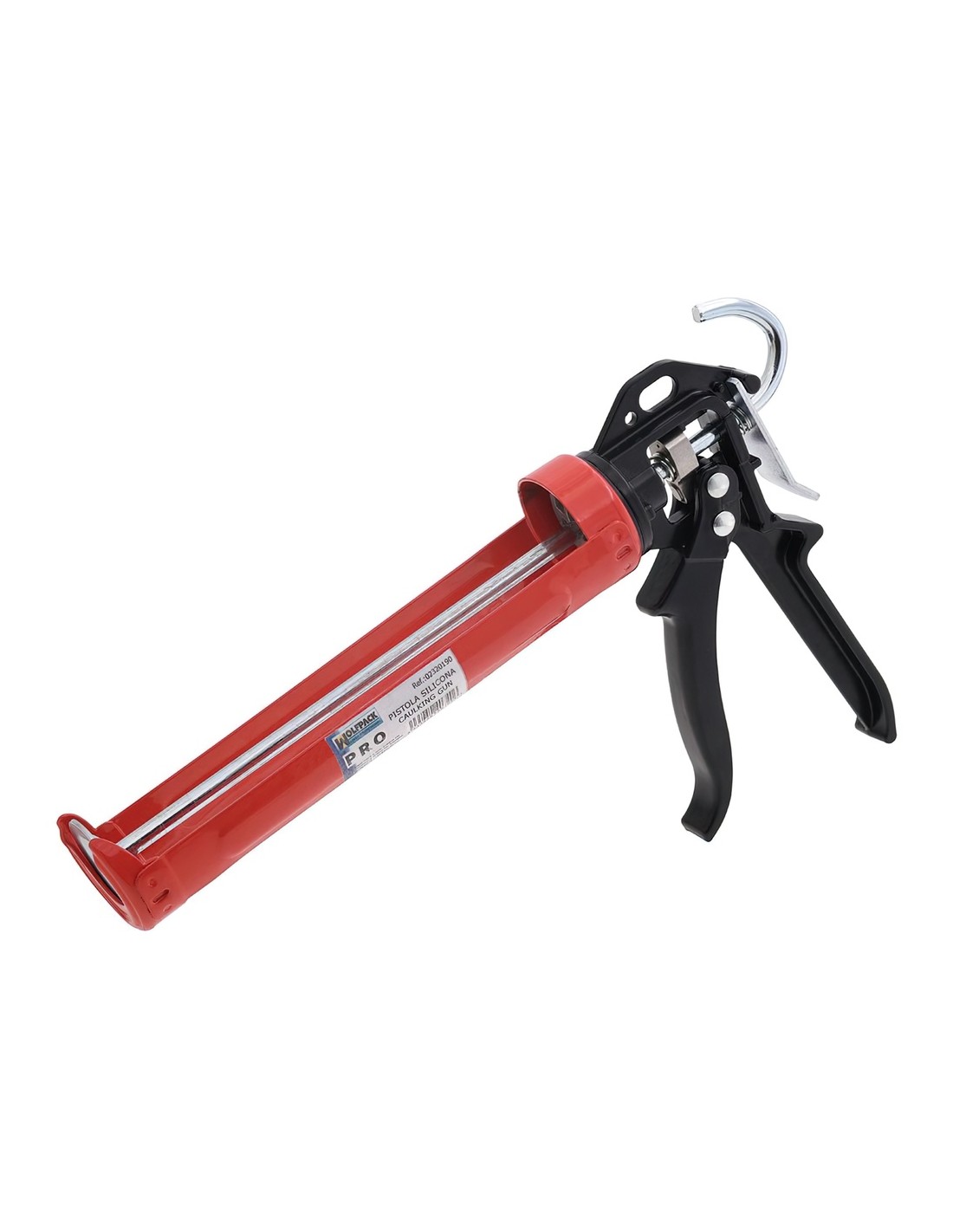 Pistola silicona profesional roja/negra profesional - Con varilla. - Empuje reforzado. - Valido para todos los cartuchos de silicona. - Realizado en metal.