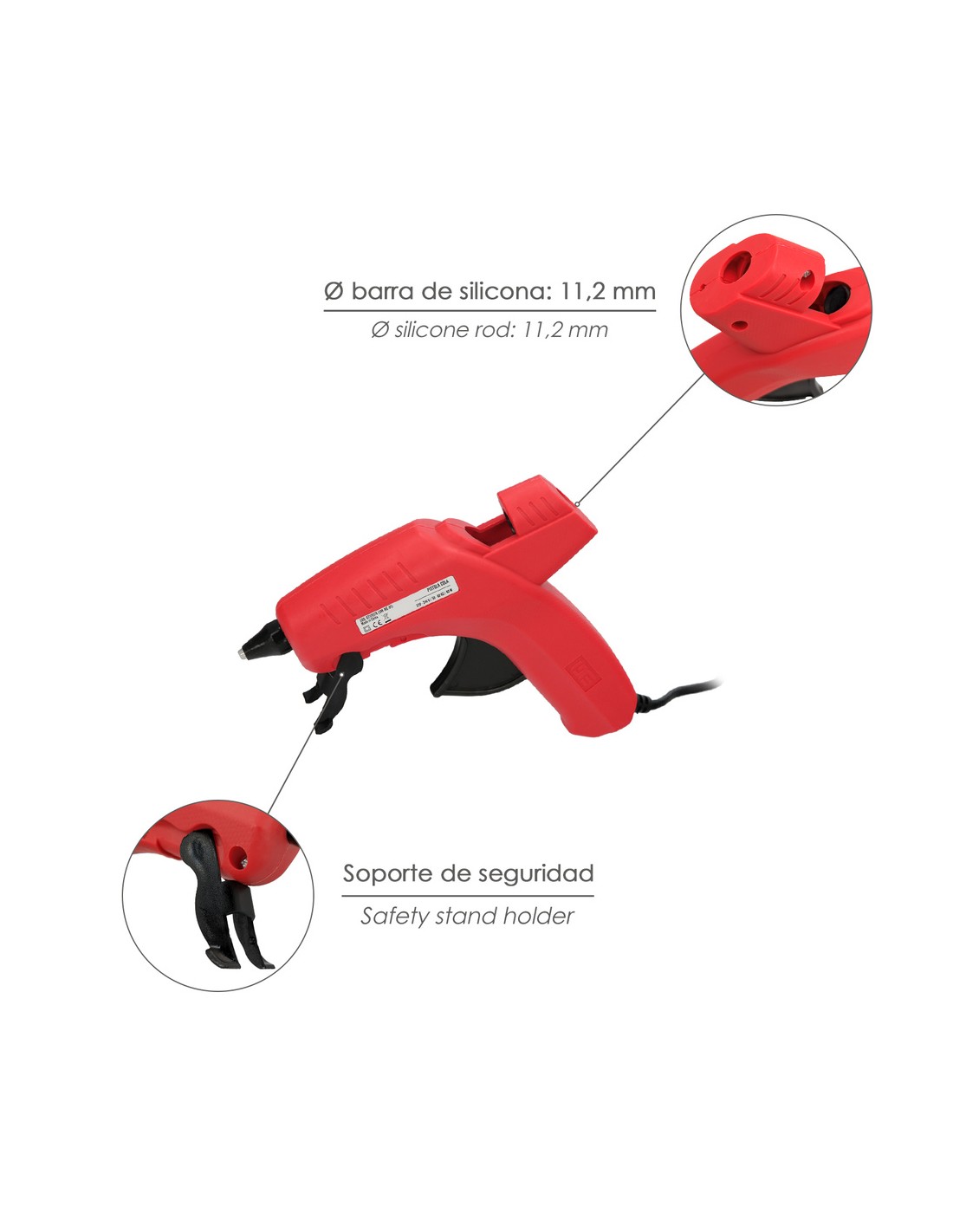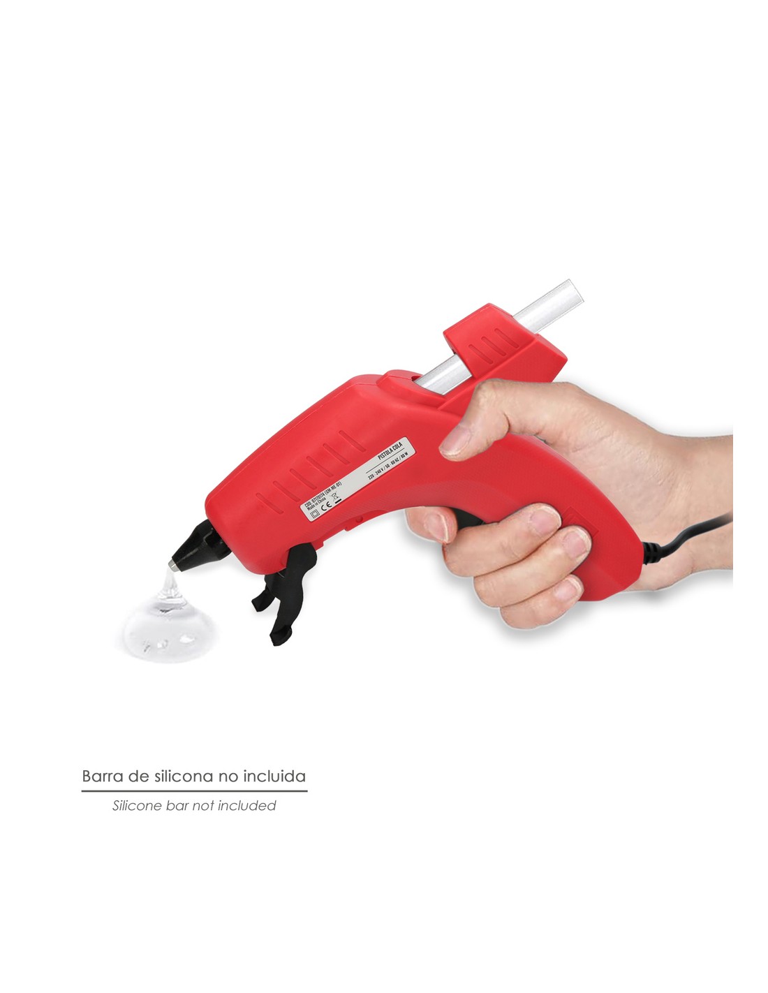 - Articulo tambien conocido como: Pistola silicona, Pistola silicona barra, pistola silicona caliente, pistola termofusible.
