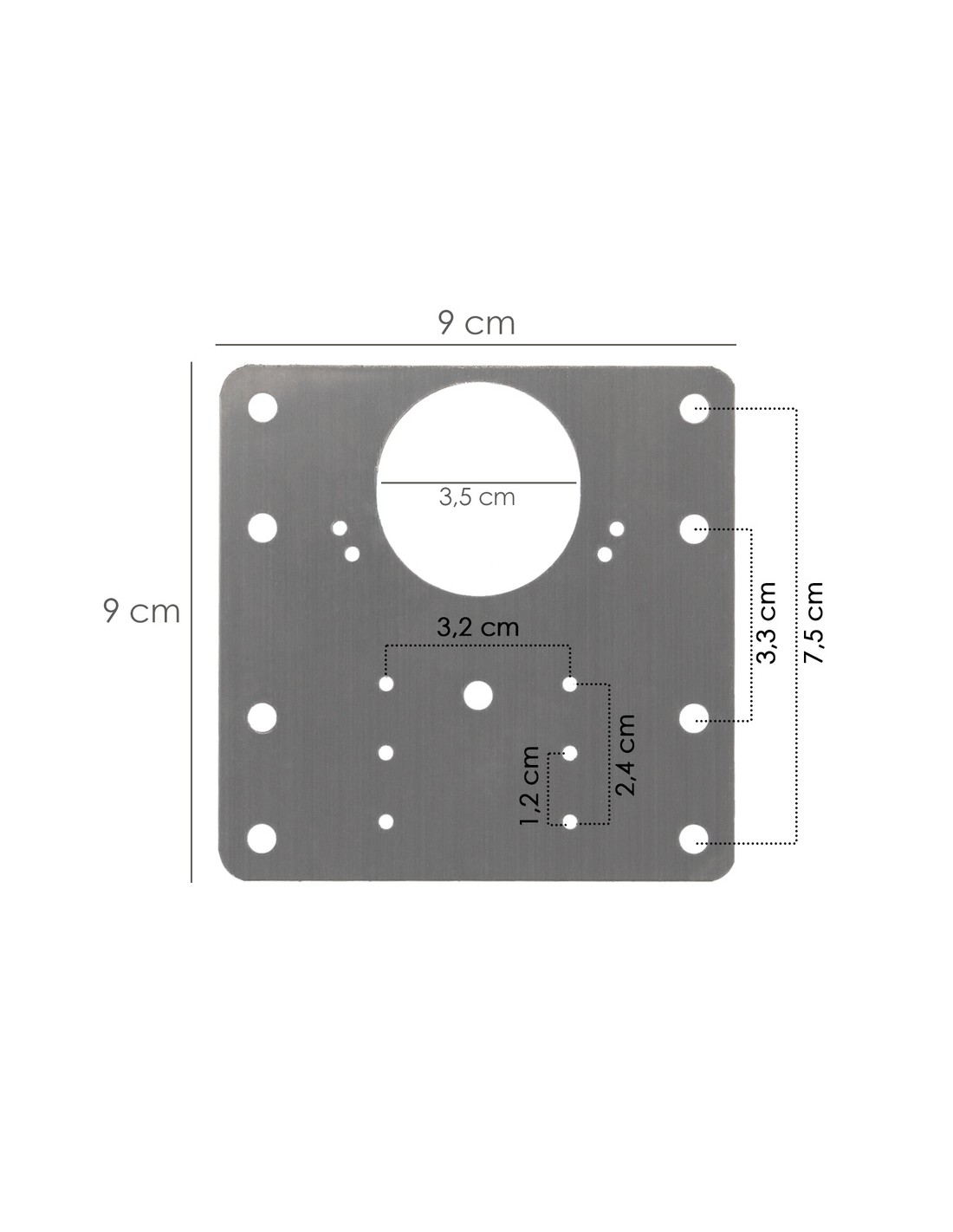- Medida placa: 9x9 cm.