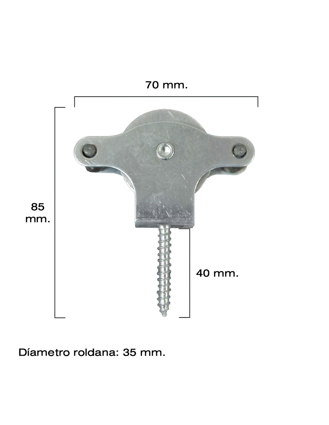 Polea Tendedero Wolfpack Zincado 40 mm. Roldana Metal con Tirafondo