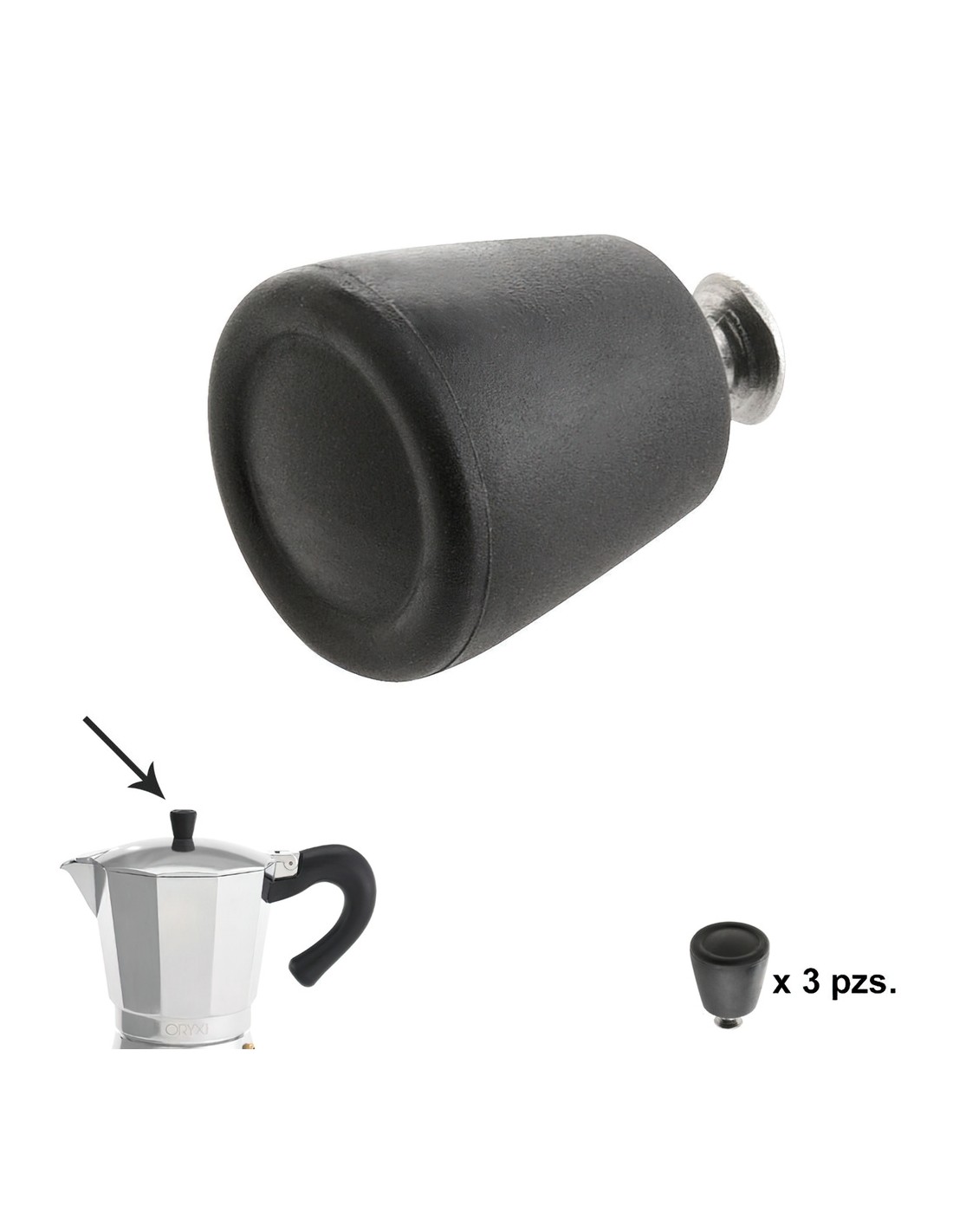 - Pomo universal para casi todas las caferas de aluminio de 2, 3, 6, 9 y 12 tazas.
