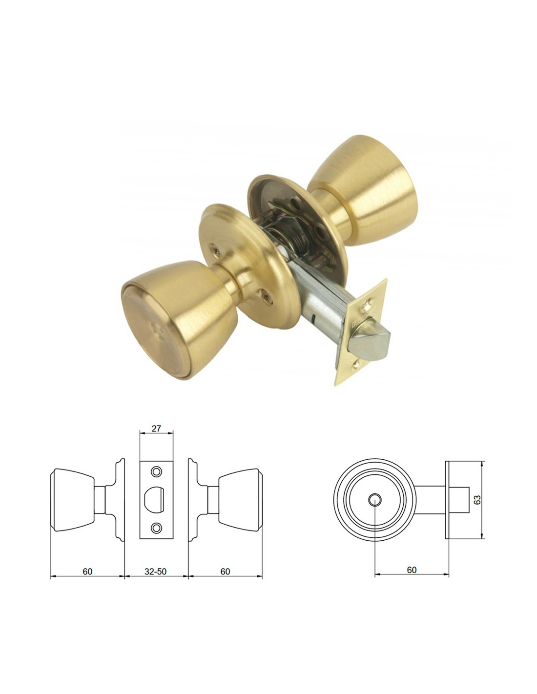 - Cerradura de pomo para puerta de paso. Pomo libre por el exterior e interior.