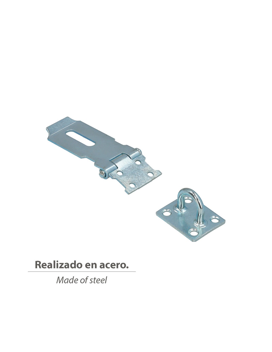 Porta candados Wolfpack pequeño - Realizado en acero. - Ideal para cerrar puertas, ventanas, etc. - Medida: pletina de fijación (largo x ancho)= 34x40 mm. - Medida: pletina de cierre (largo x ancho) = 103x34 mm.