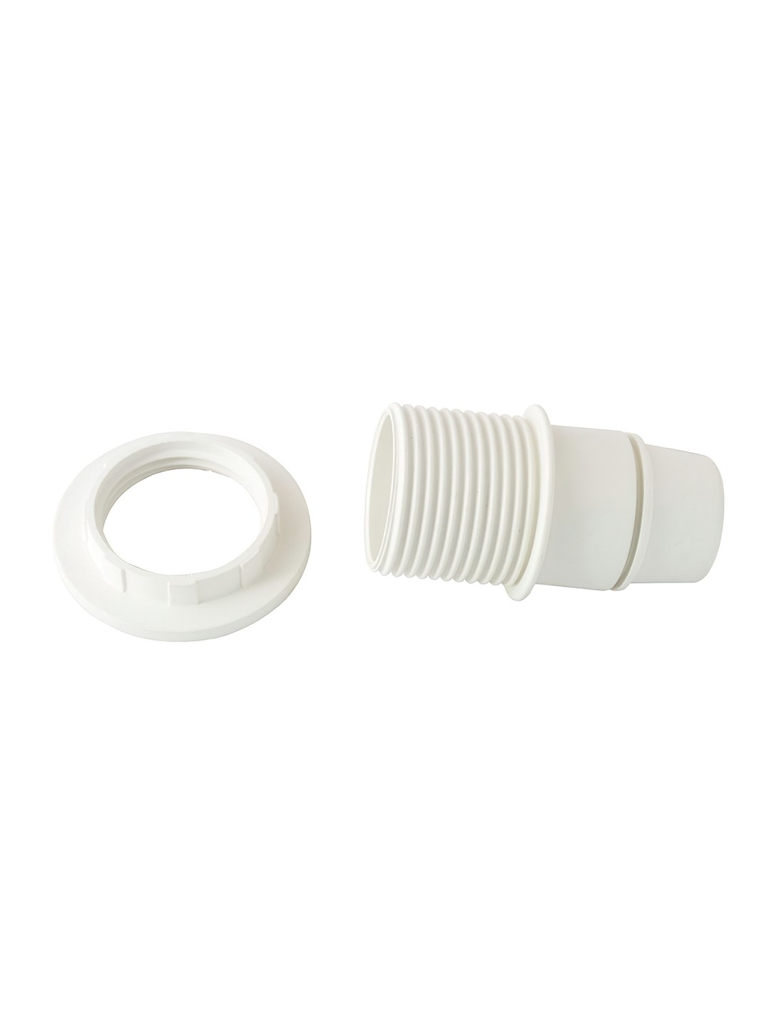 Portalamparas - 4 A. E-14 con rosca - Con arandela - Color blanco. - Articulo tambien conocido como: porta lamparas, portalamparas, porta bombillas, portabombillas.