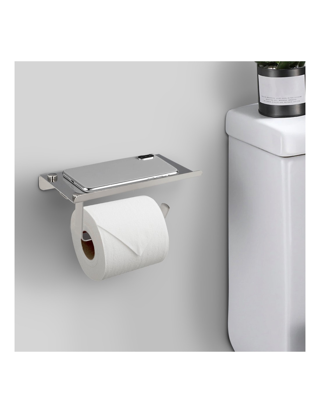 - Diseño elegante y minimalista para este portarollos con bandeja para moviles.