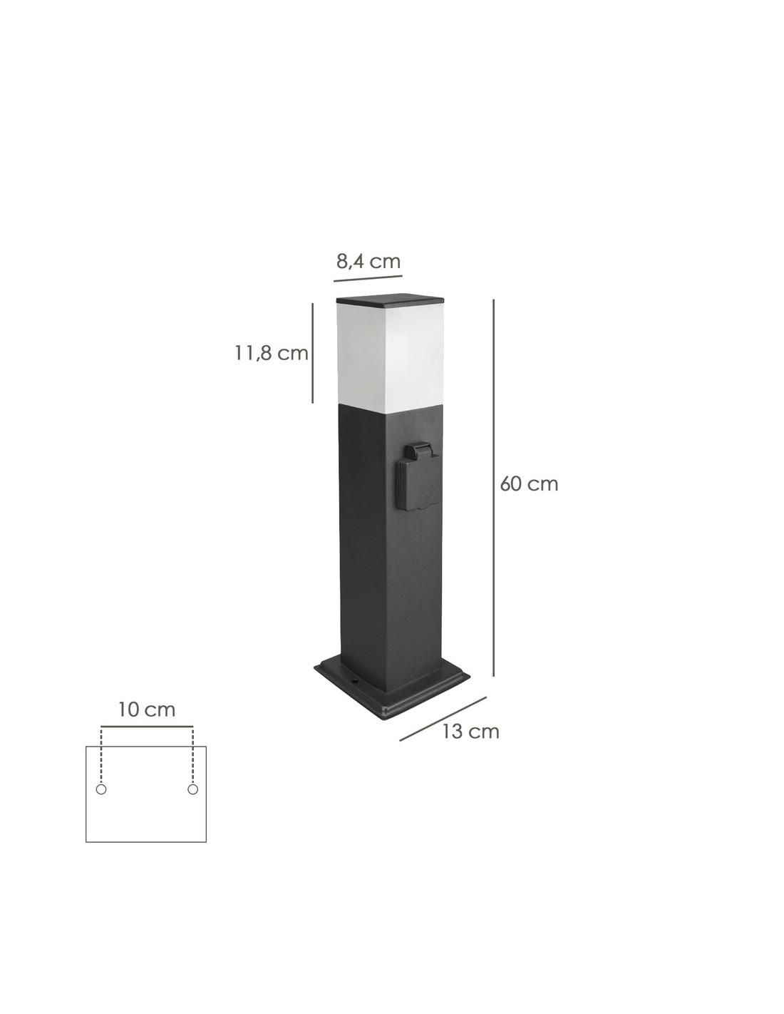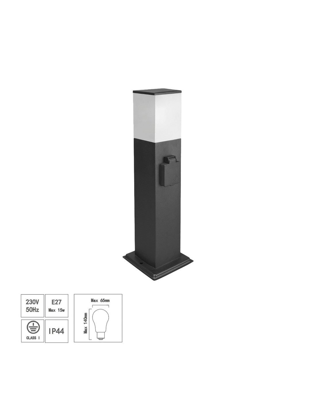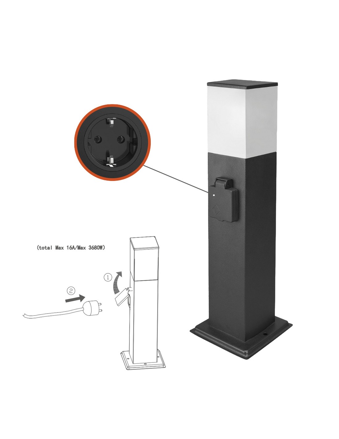 Poste Baliza Jardin IP44 Con Enchufe Negro
