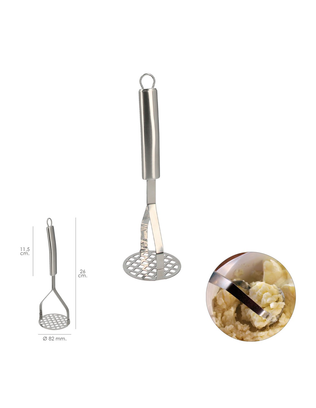 Prensapatatas Realizado en Acero Inoxidable Ø 82 mm. x 26 cm.