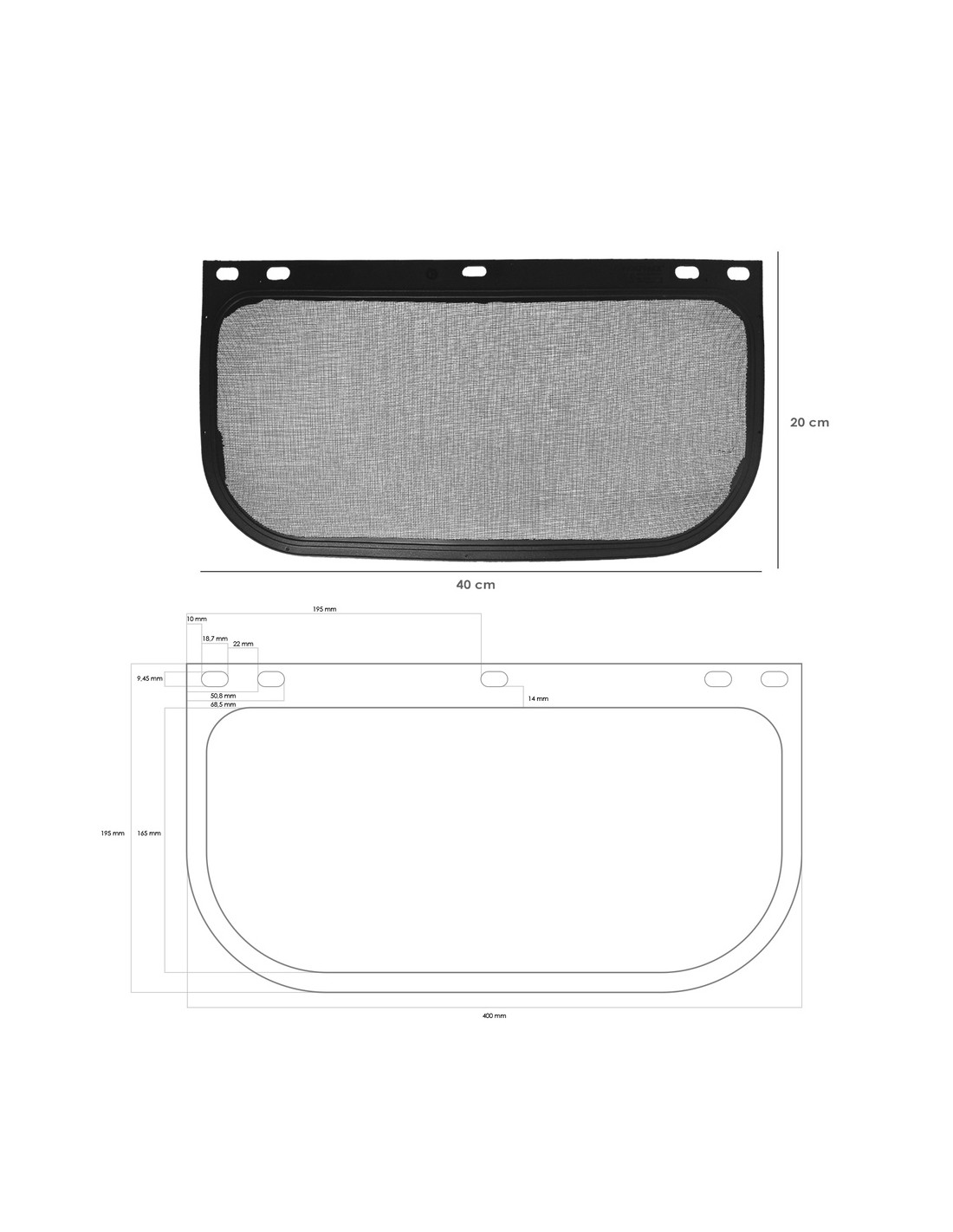 - Visera de seguridad de malla metálica, resistente a los impactos. Visera intercambiable.