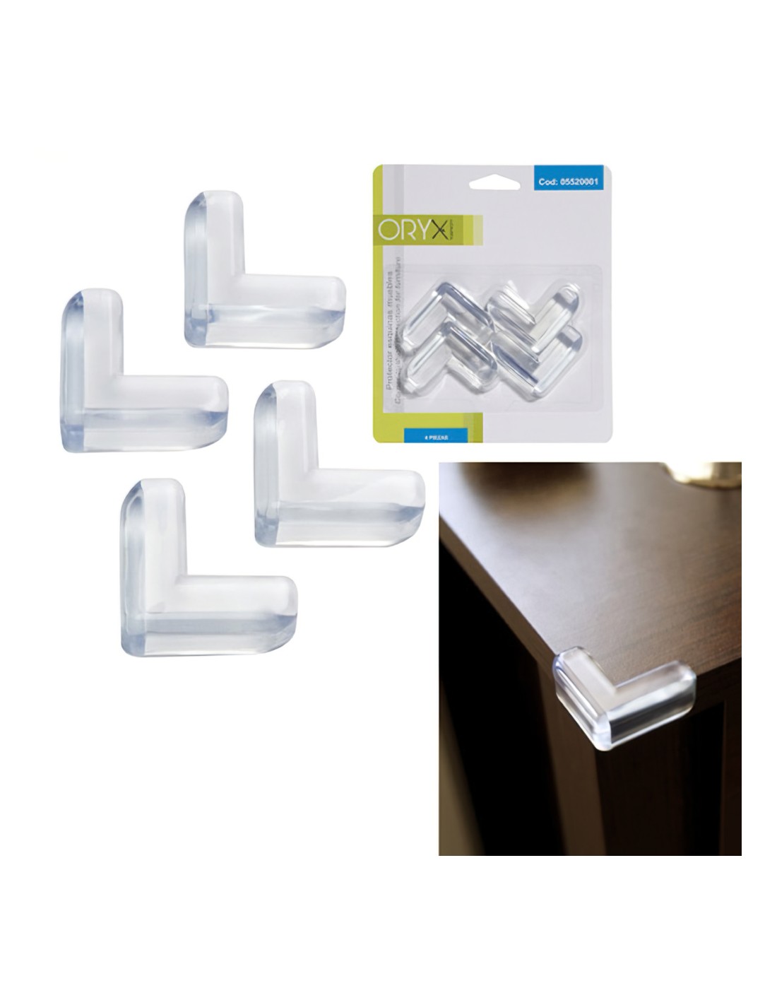 Protector seguridad - Blister 4 piezas. - Protección para evitar golpes con las esquinas de los muebles. - Uso tambien para cajones - Realizado en plastico. - Articulo tambien conocido como: proteccion infantil, protección bebes, proteccion niños.