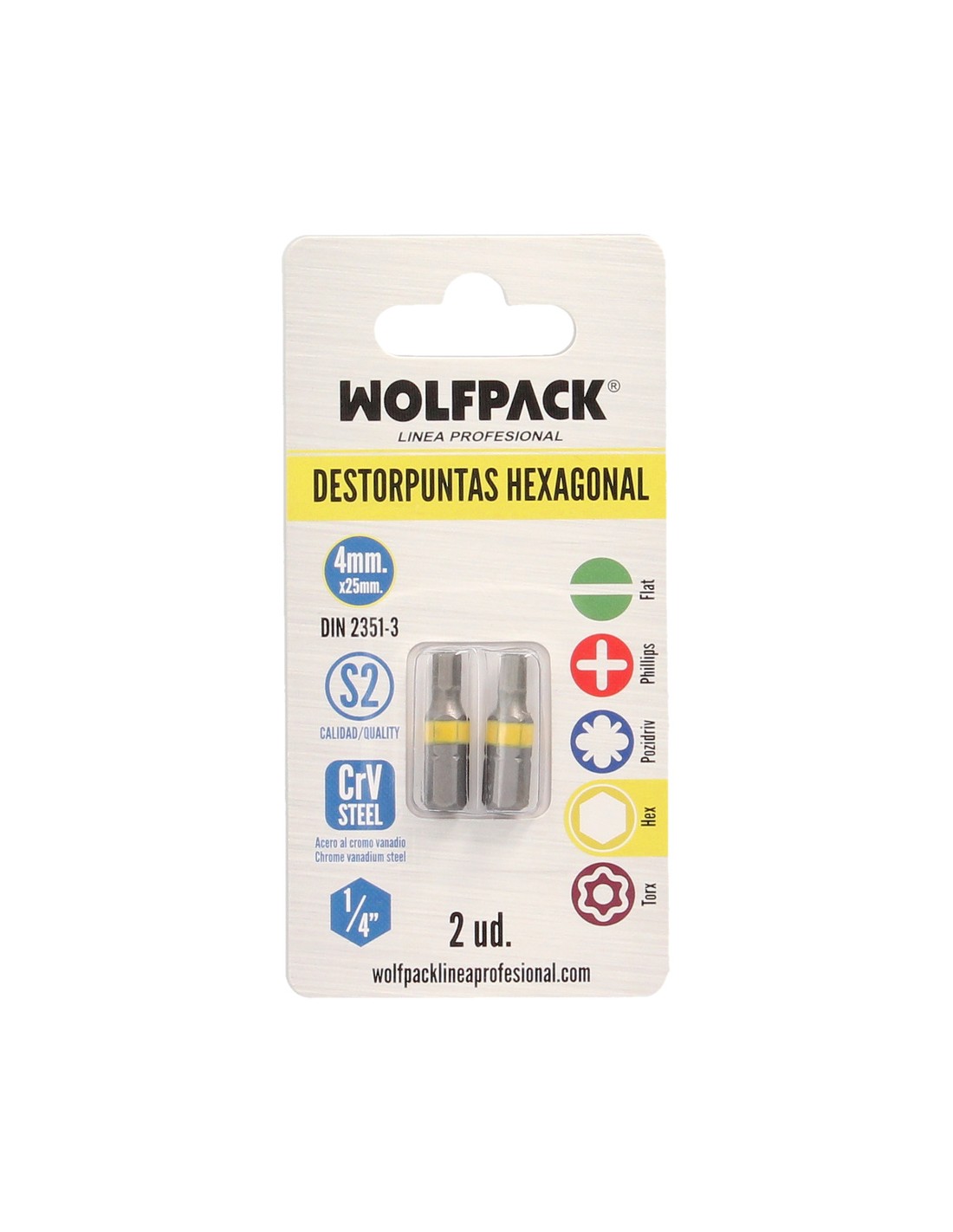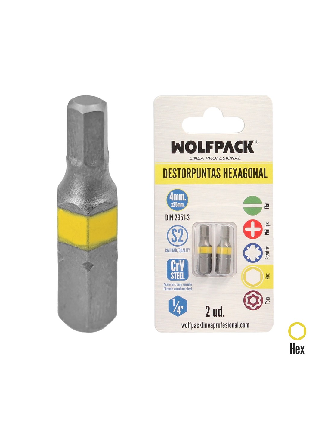 Puntas Destornillador Hexagonal 4,0 mm. (2 Piezas). Acero S2 al Cromo Vanadio. Puntas Hexagonales, Destorpuntas,