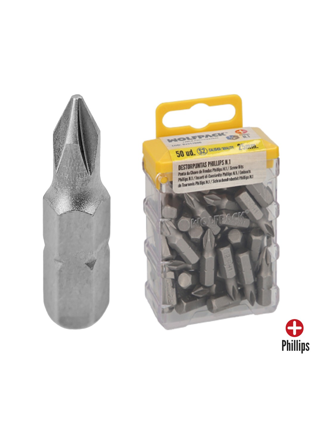 Puntas Destornillador Phillips Nº 1 (50 Piezas). Acero S2 al Cromo Vanadio. Puntas Hexagonales, Destorpuntas,