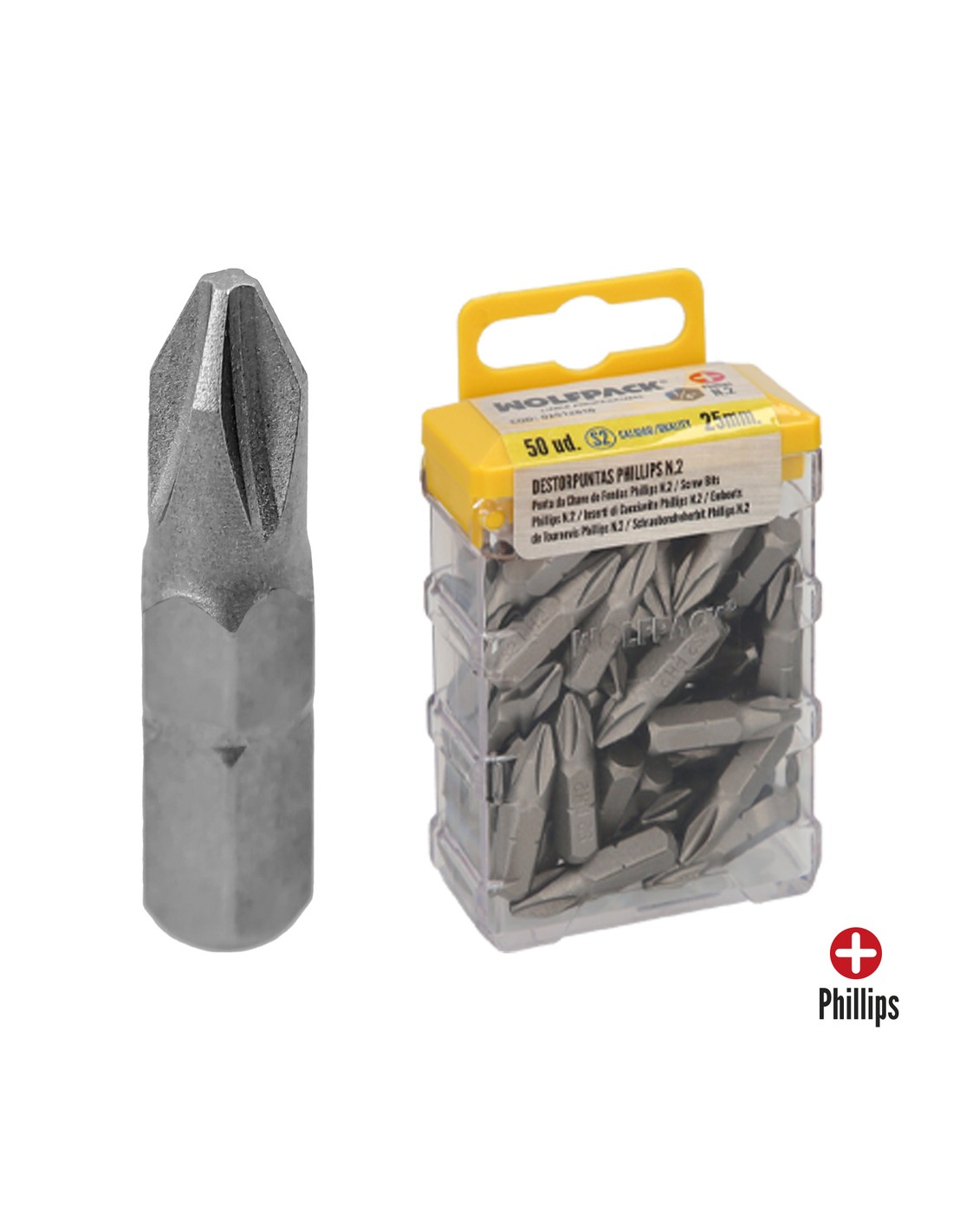 Puntas Destornillador Phillips Nº 2 (50 Piezas). Acero S2 al Cromo Vanadio. Puntas Hexagonales, Destorpuntas,