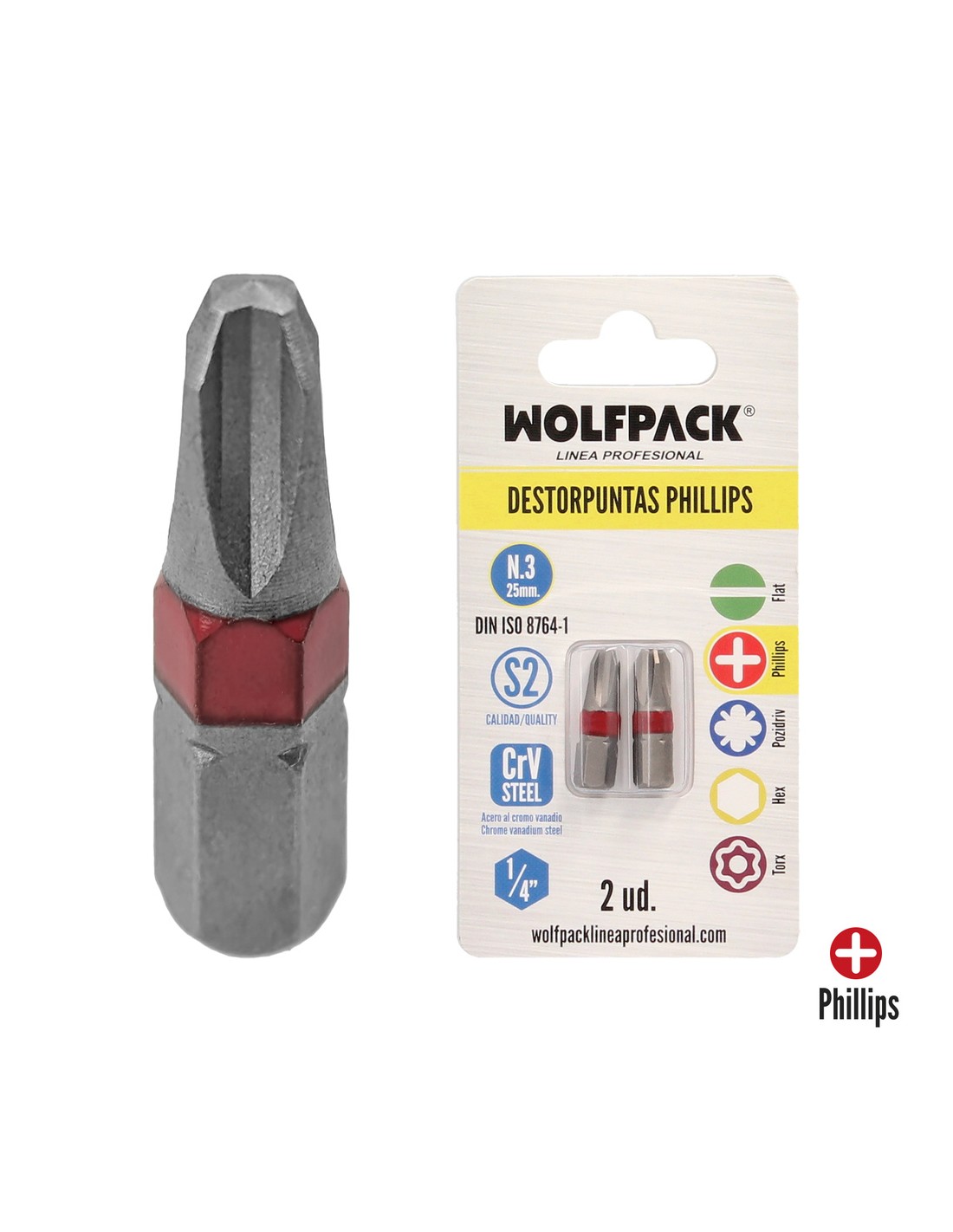 Puntas Destornillador Phillips Nº 3 (2 Piezas). Acero S2 al Cromo Vanadio. Puntas Hexagonales, Destorpuntas,