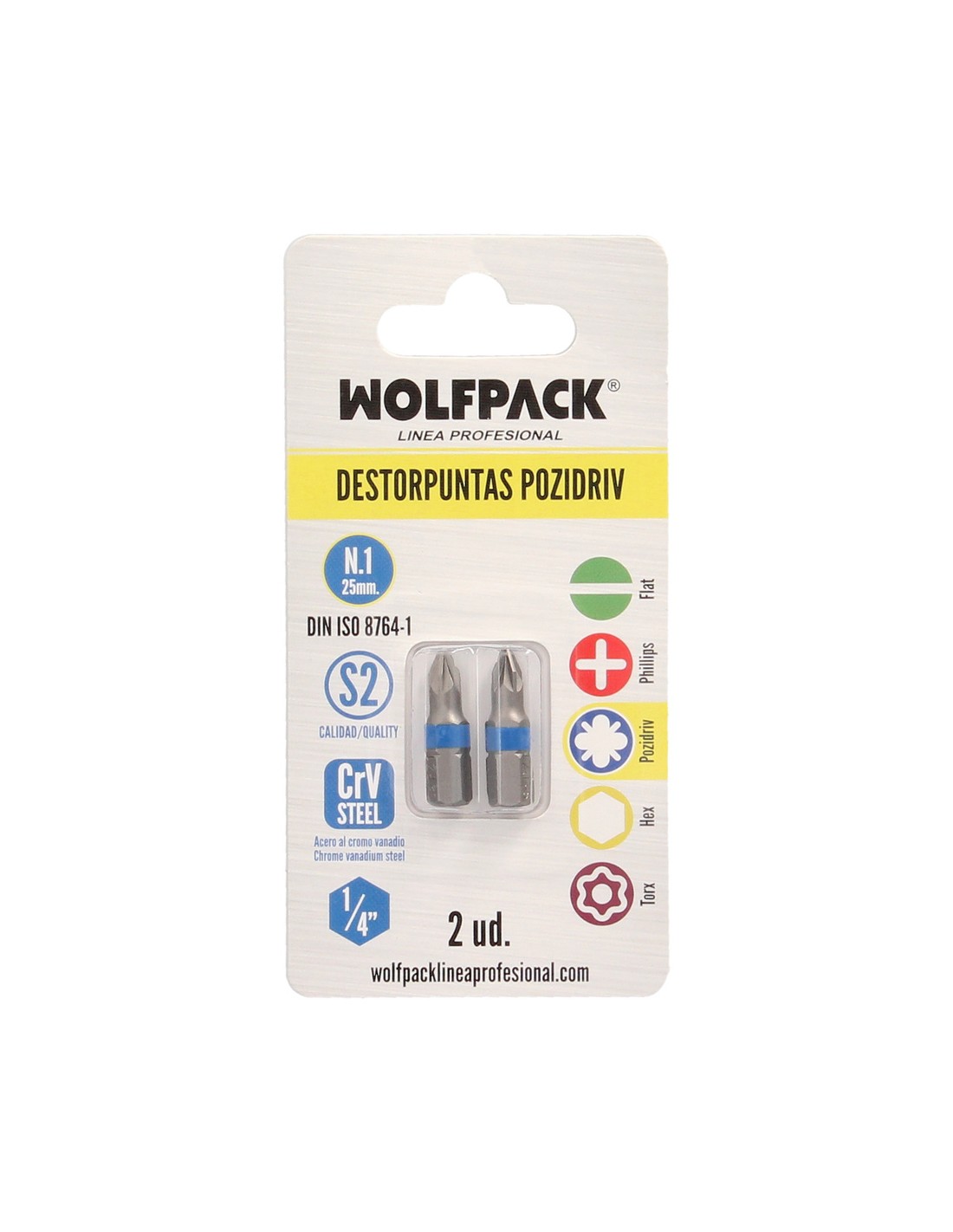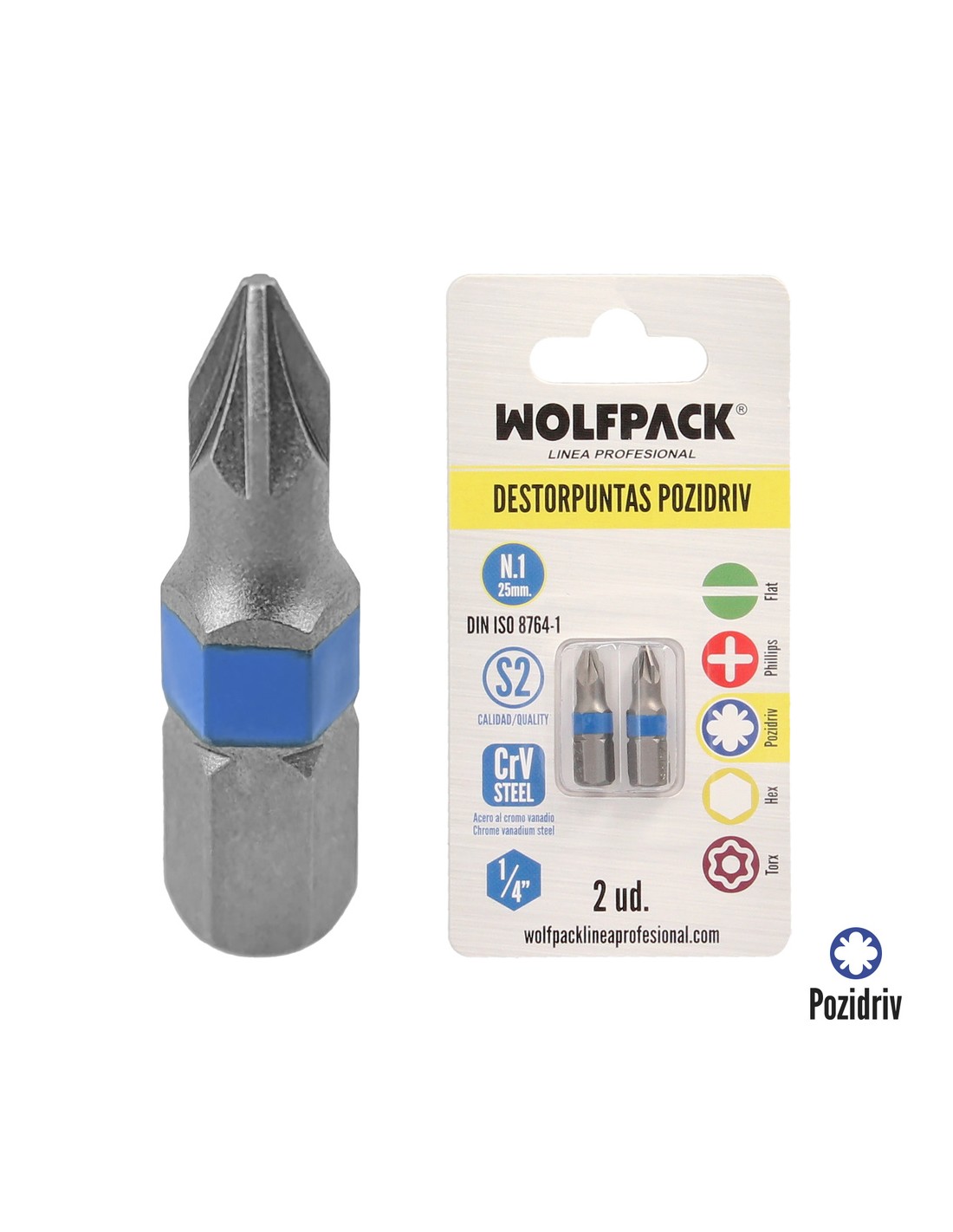 Puntas Destornillador Pozidriv Nº 1 (2 Piezas). Acero S2 al Cromo Vanadio. Puntas Hexagonales, Destorpuntas,