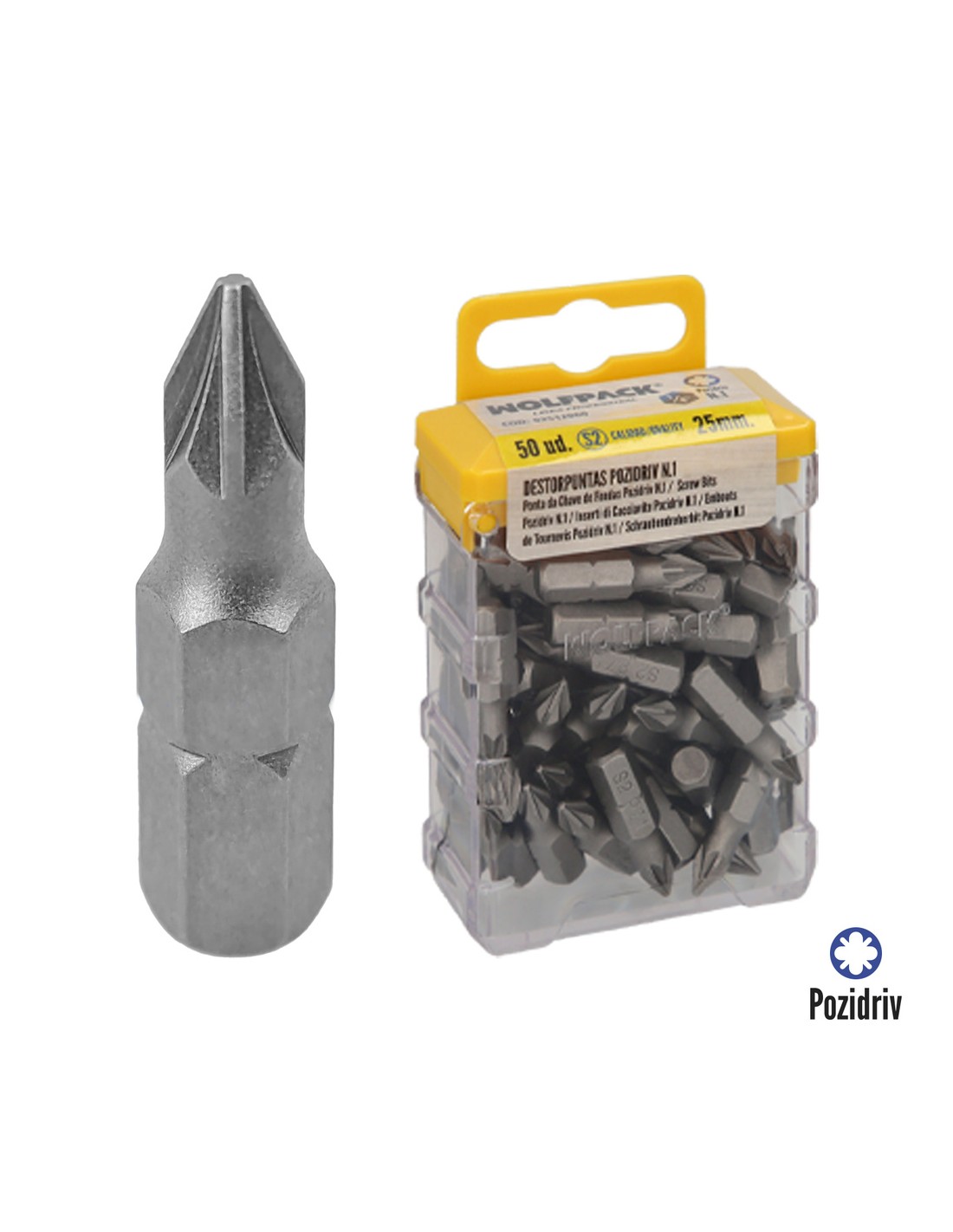 Puntas Destornillador Pozidriv Nº 1 (50 Piezas). Acero S2 al Cromo Vanadio. Puntas Hexagonales, Destorpuntas,