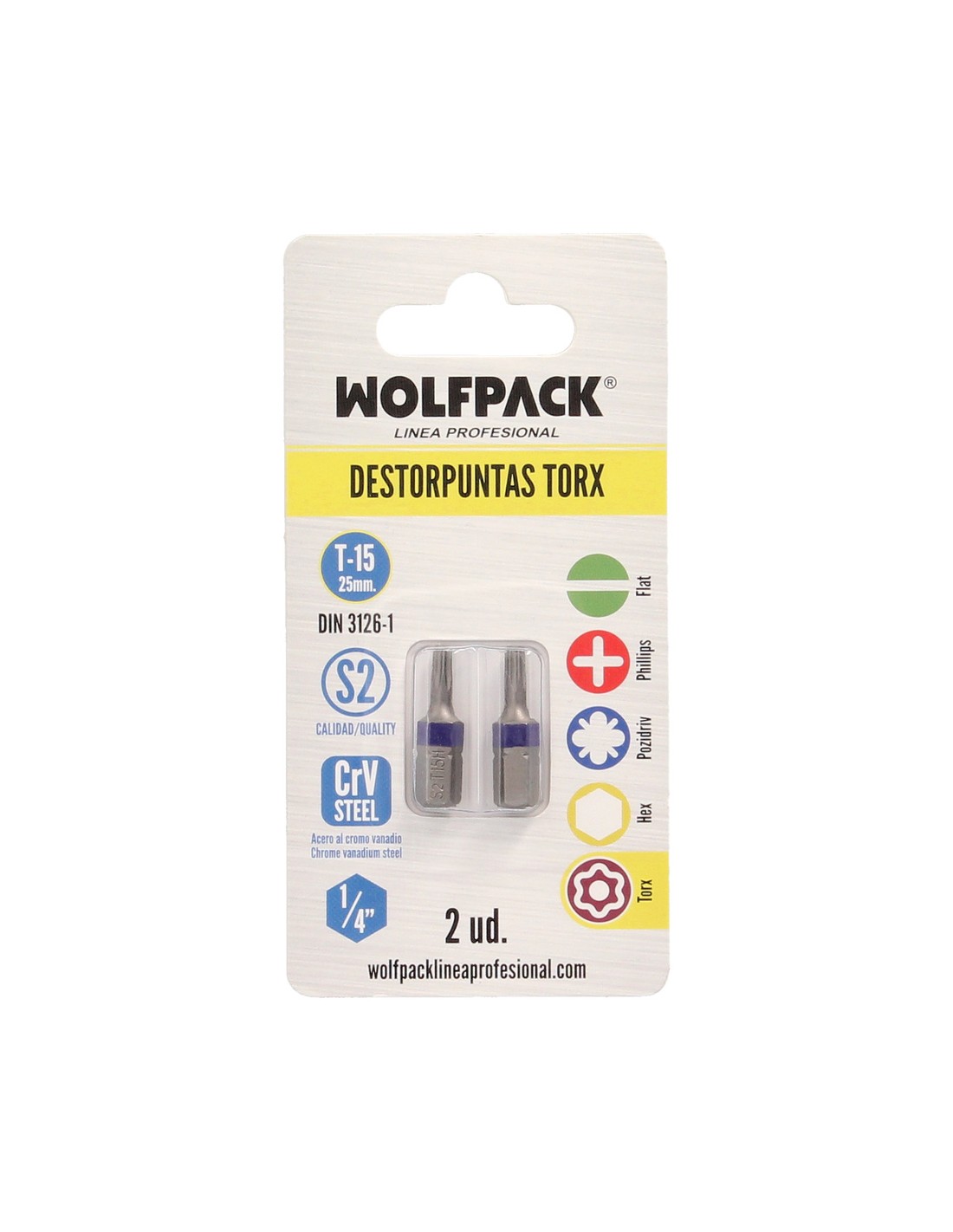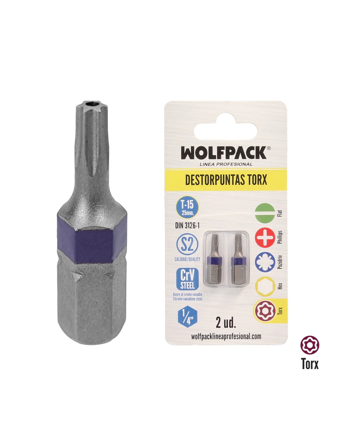 Puntas Destornillador Torx 15 Inviolable (2 Piezas). Acero S2 al Cromo Vanadio. Puntas Hexagonales, Destorpuntas,