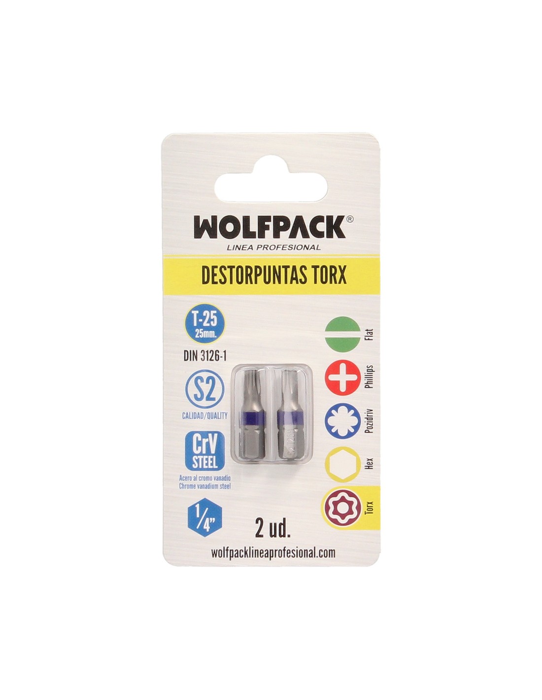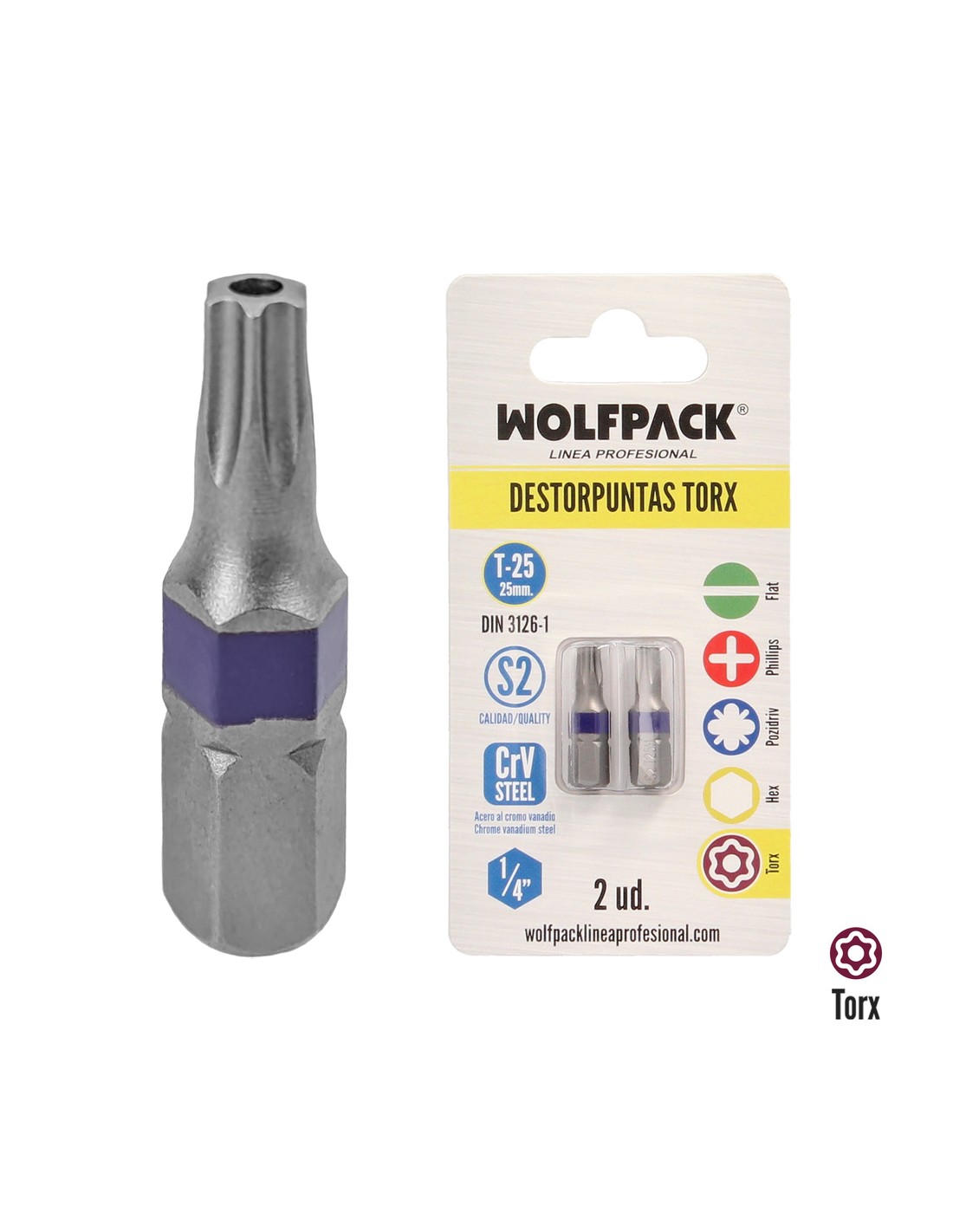 Puntas Destornillador Torx 25 Inviolable (2 Piezas). Acero S2 al Cromo Vanadio. Puntas Hexagonales, Destorpuntas,