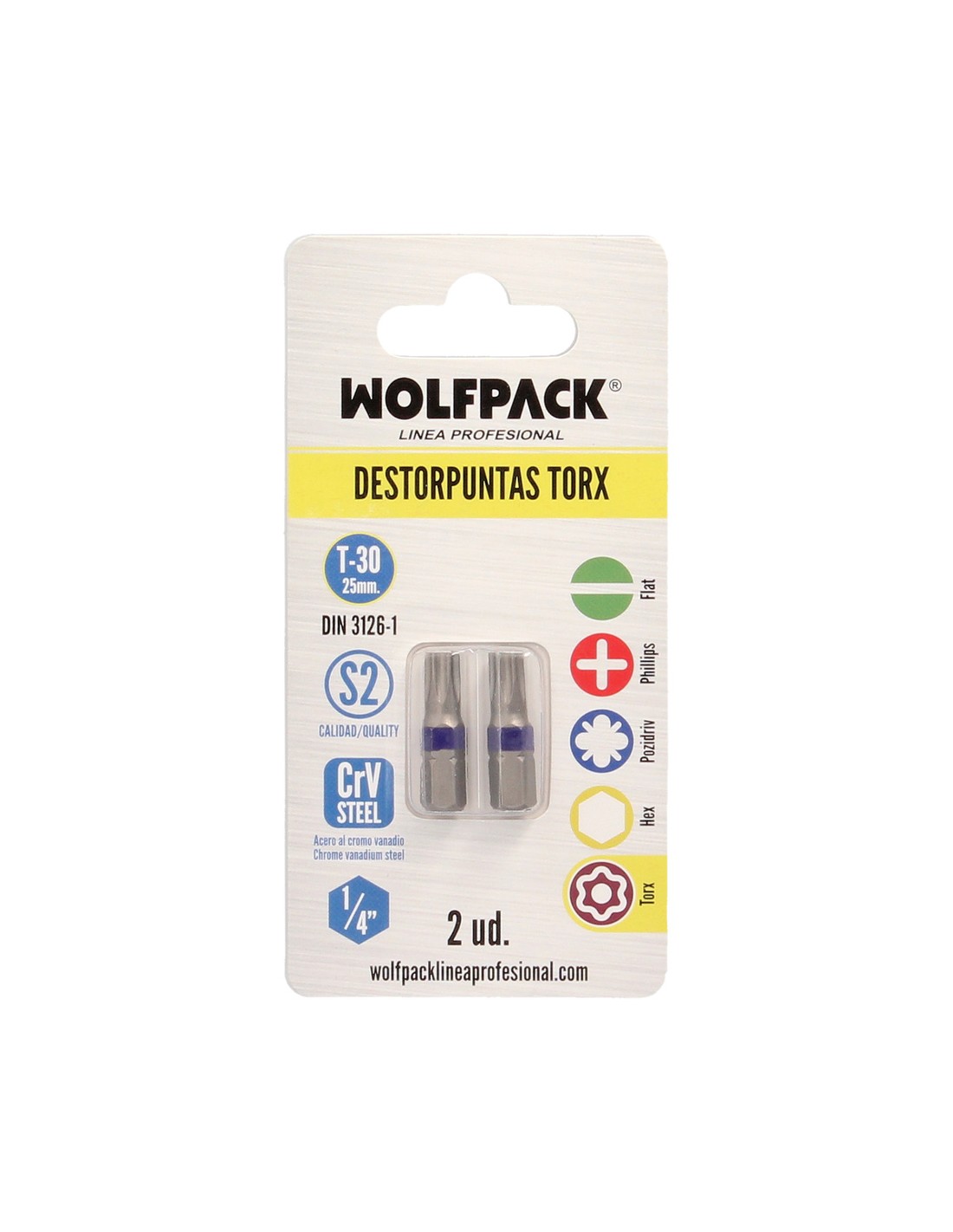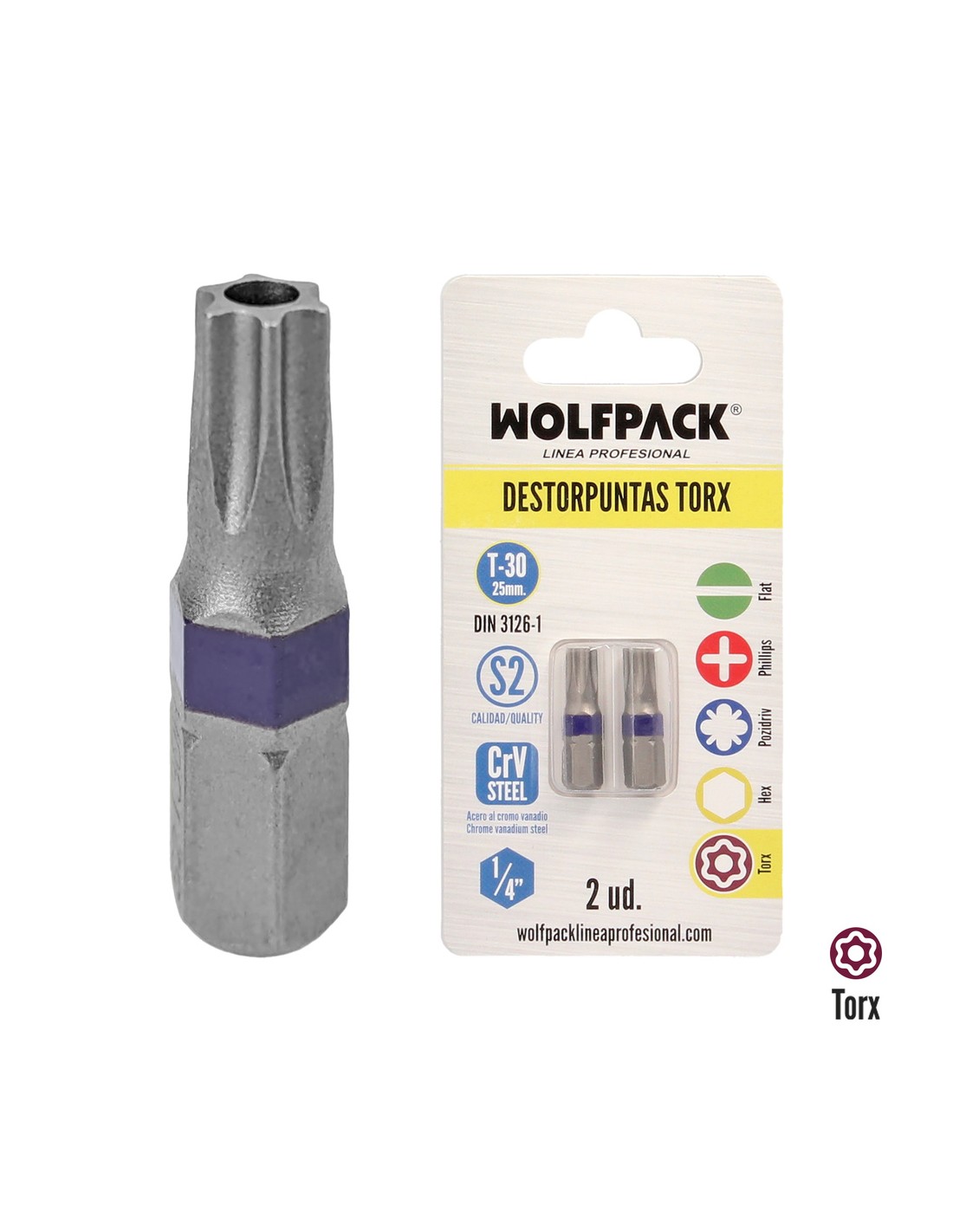 Puntas Destornillador Torx 30 Inviolable (2 Piezas). Acero S2 al Cromo Vanadio. Puntas Hexagonales, Destorpuntas,