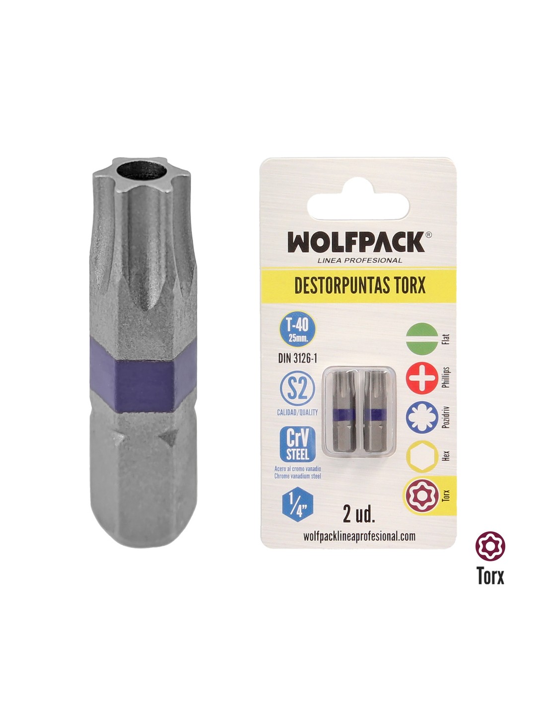 Puntas Destornillador Torx 40 Inviolable (2 Piezas). Acero S2 al Cromo Vanadio. Puntas Hexagonales, Destorpuntas,