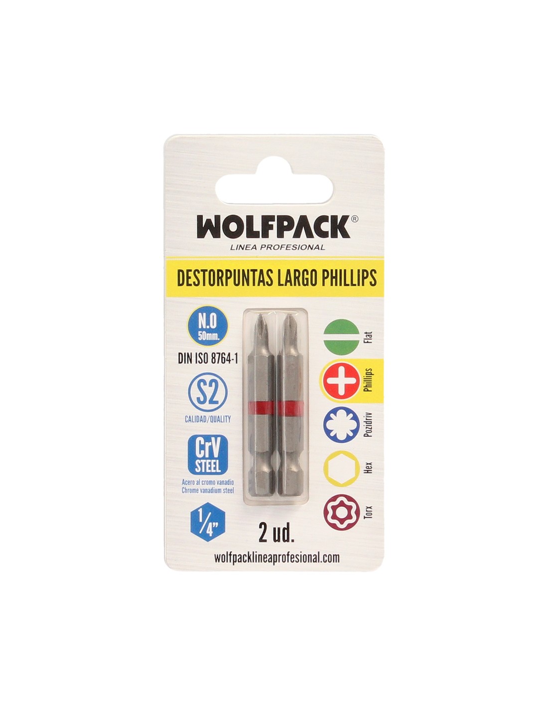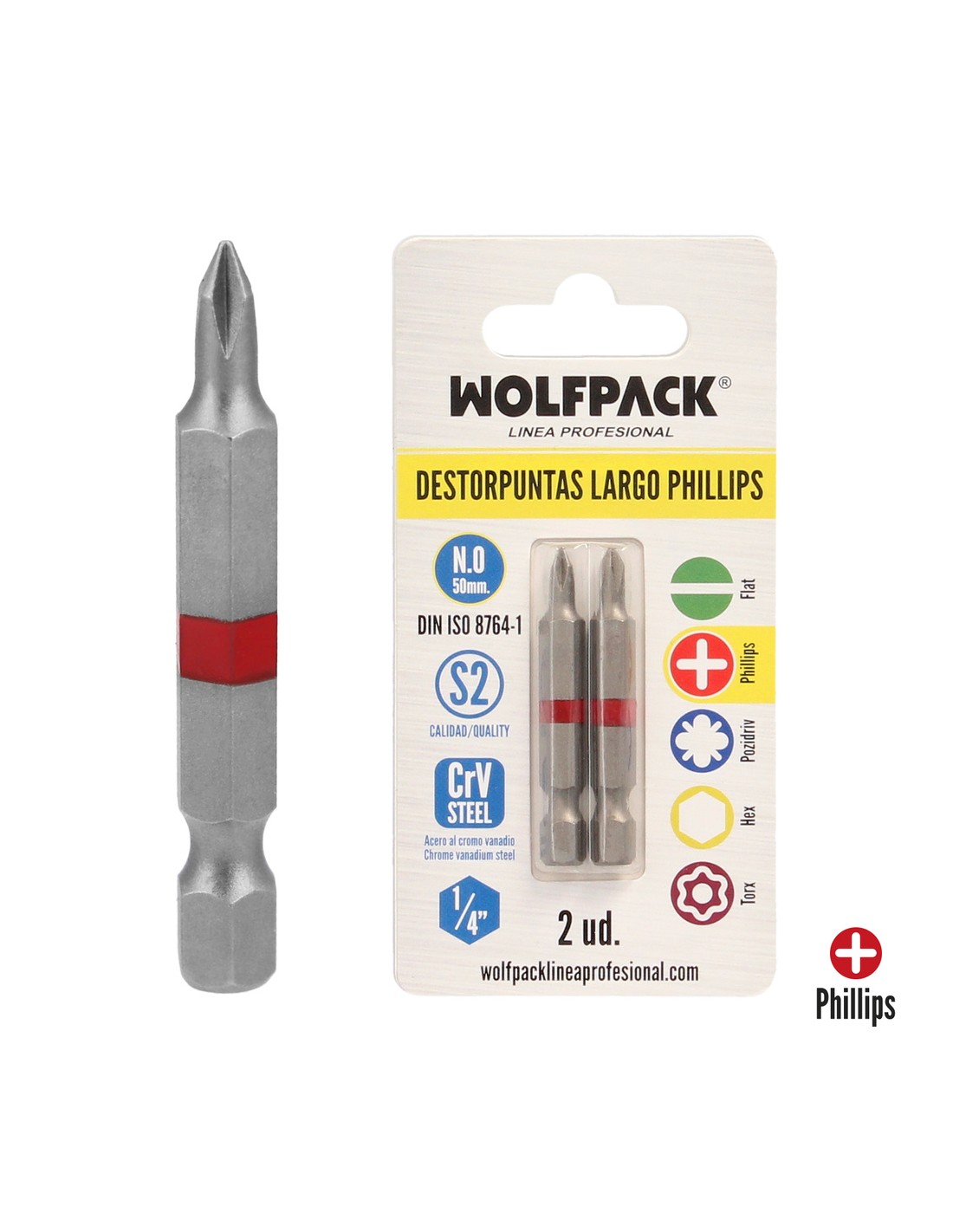 Puntas Largas Destornillador Phillips Nº 0 (2 Piezas). Acero S2 al Cromo Vanadio. Puntas Hexagonales, Destorpuntas,