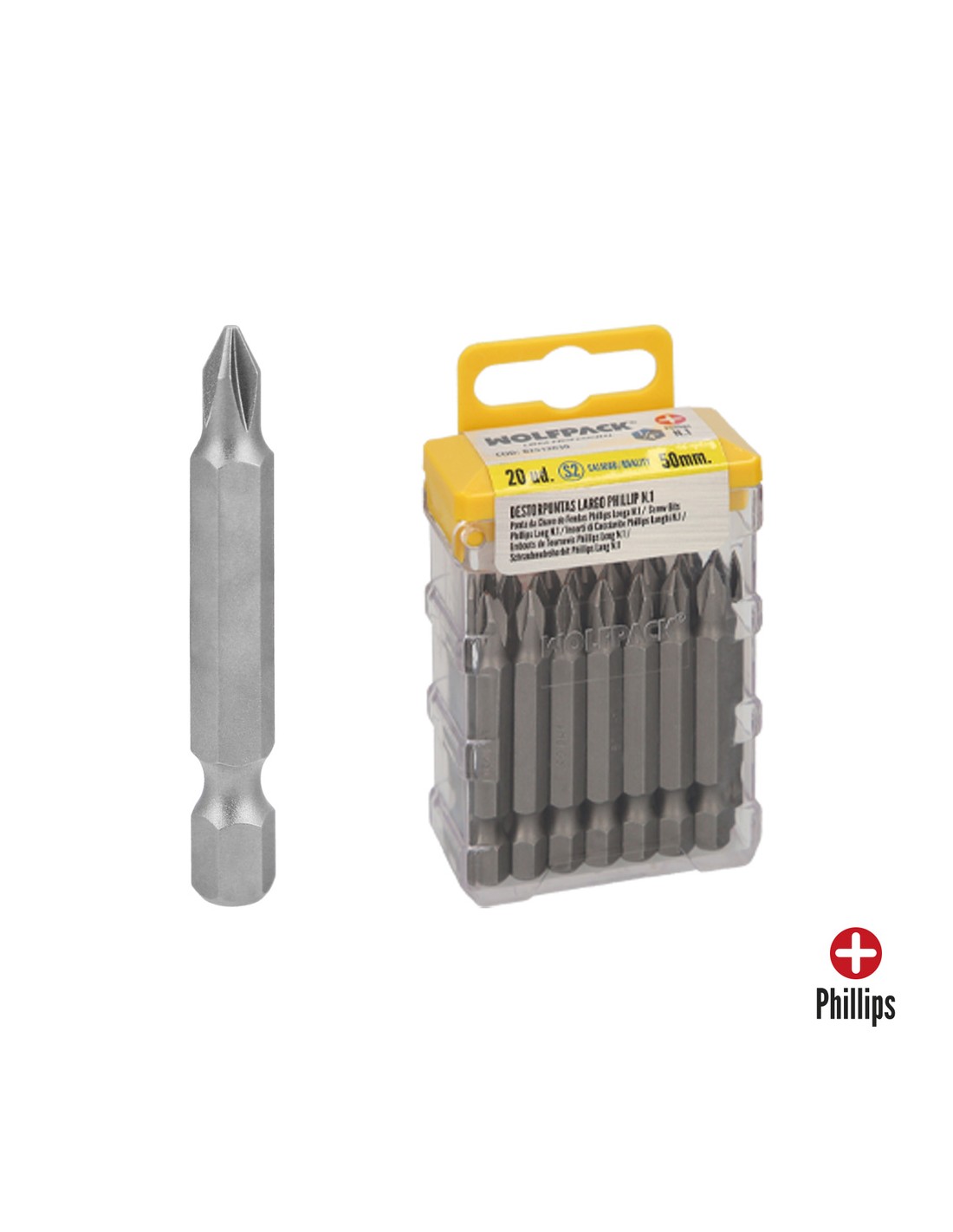 Puntas Largas Destornillador Phillips Nº 1 (20 Piezas). Acero S2 al Cromo Vanadio. Puntas Hexagonales, Destorpuntas,
