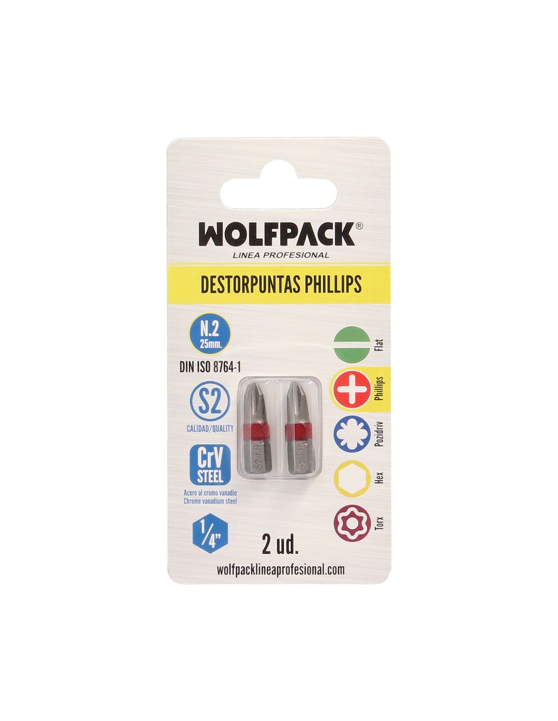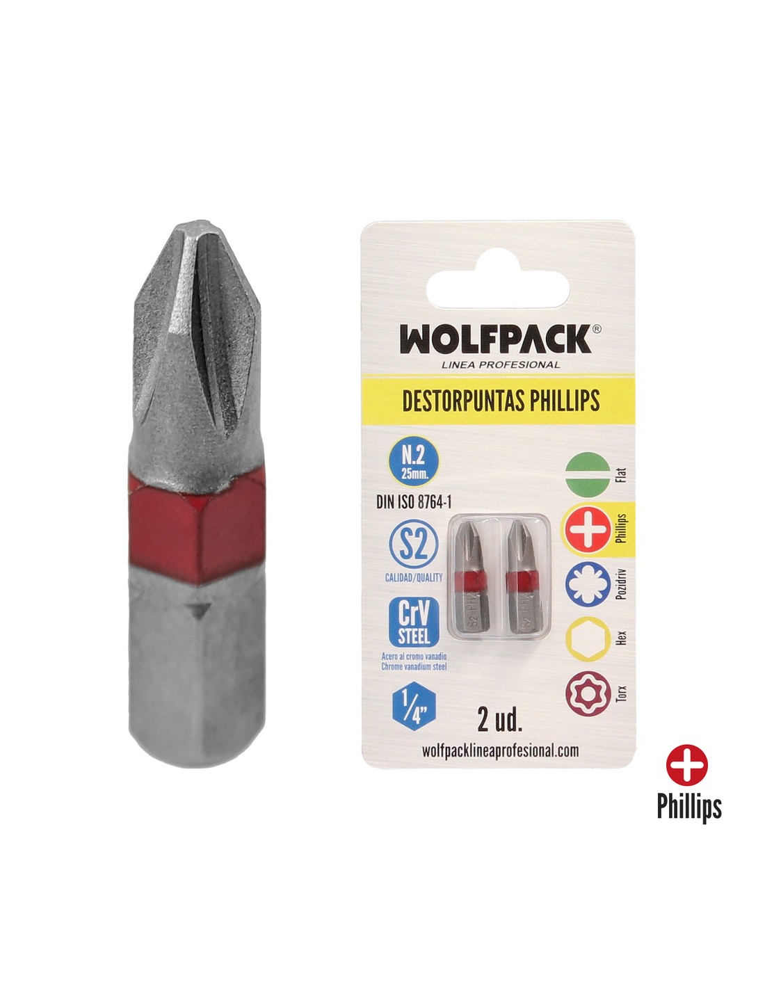Puntas Largas Destornillador Phillips Nº 2 (2 Piezas). Acero S2 al Cromo Vanadio. Puntas Hexagonales, Destorpuntas,