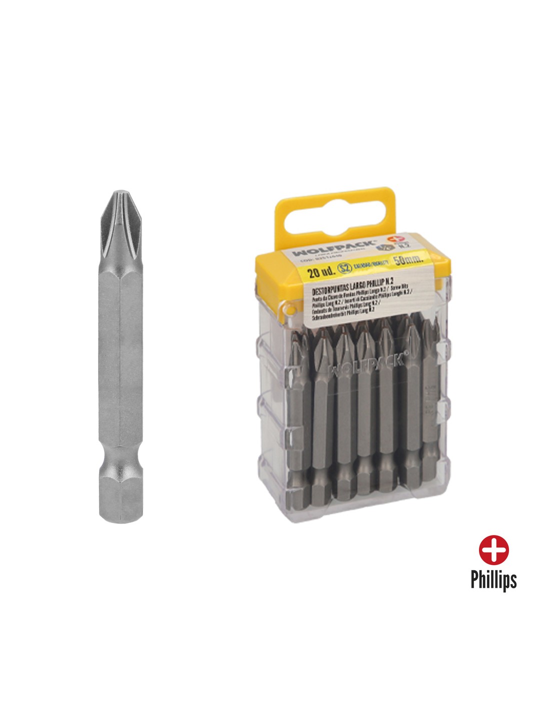 Puntas Largas Destornillador Phillips Nº 2 (20 Piezas). Acero S2 al Cromo Vanadio. Puntas Hexagonales, Destorpuntas,
