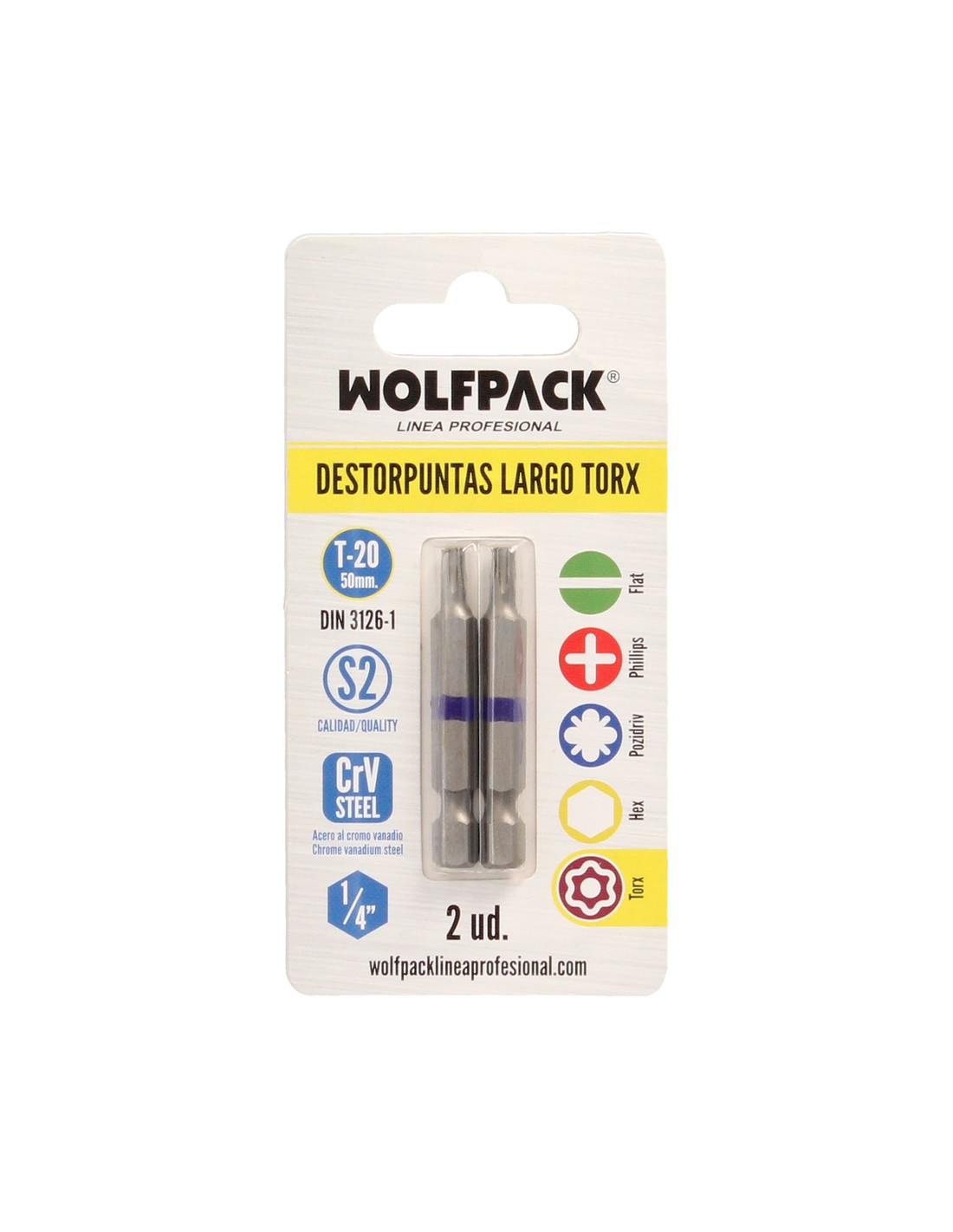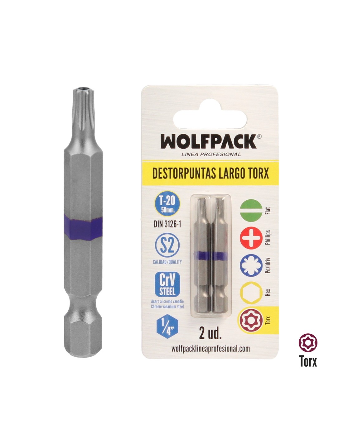 Puntas Largas Destornillador Torx T20 (2 Piezas). Acero S2 al Cromo Vanadio. Puntas Hexagonales, Destorpuntas,