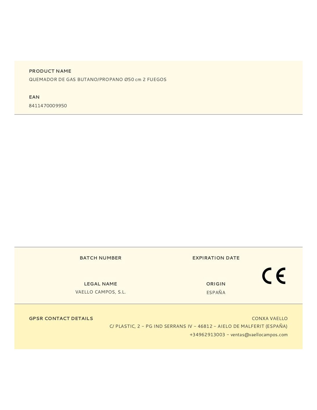 QUEMADOR GAS BUTANO/PROPANO å50CM 2 FUEGOS.
