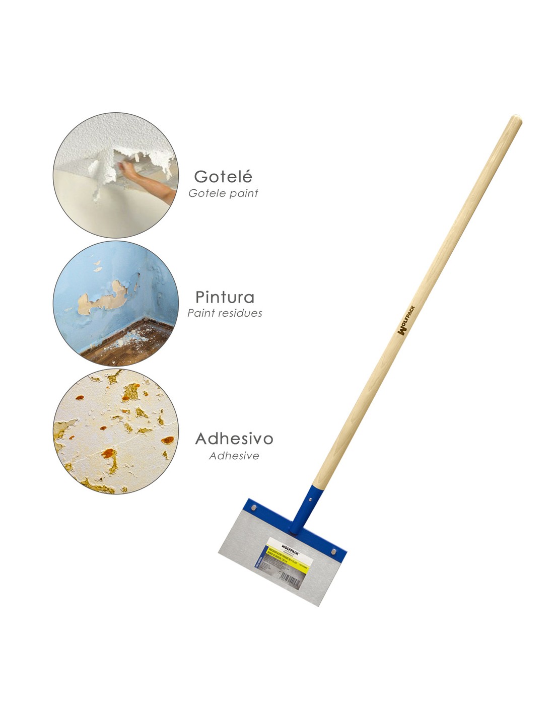 Rascador / Rasqueta Para Techos, Suelos, Paredes 300x150 mm. Con Mango Madera 1200 mm. Fabricado en Acero