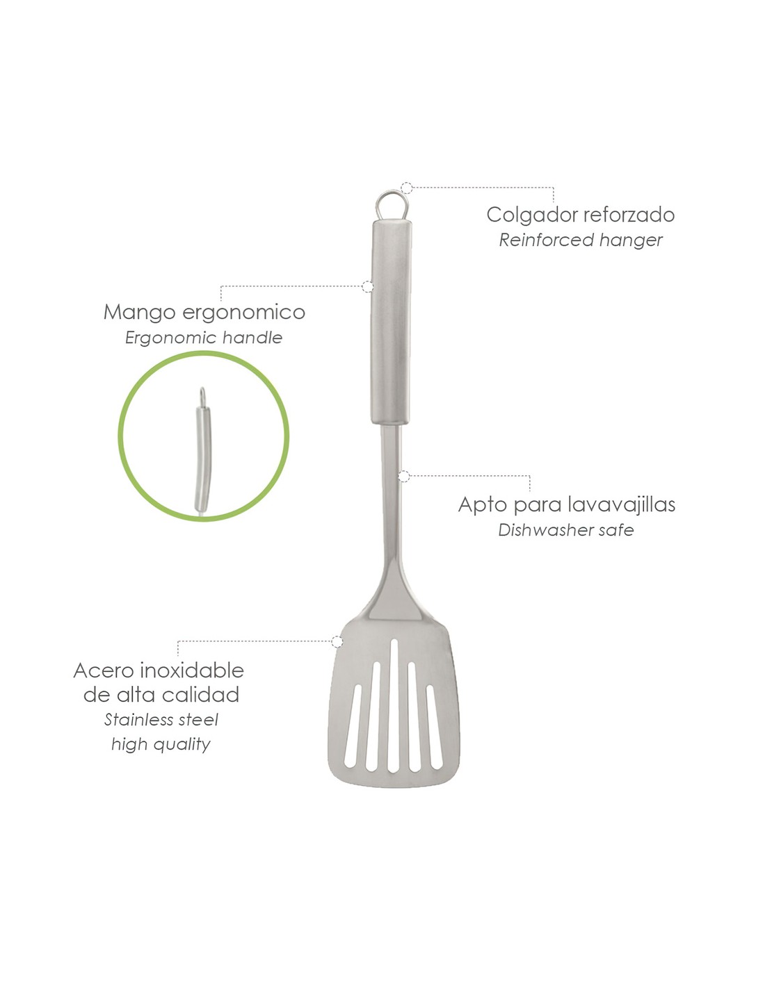 - Realizado en acero inoxidable de alta calidad, apto para su lavado en el lavavajillas.