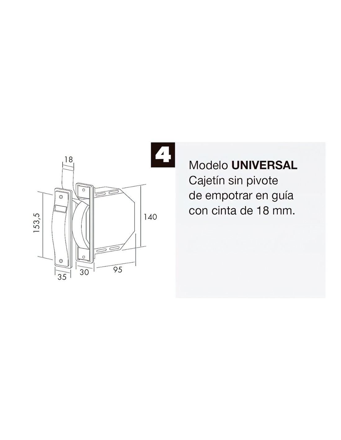 Recogedor Persiana Mini Blanco Cinta 18 mm. Empotrar Sin Pivotes