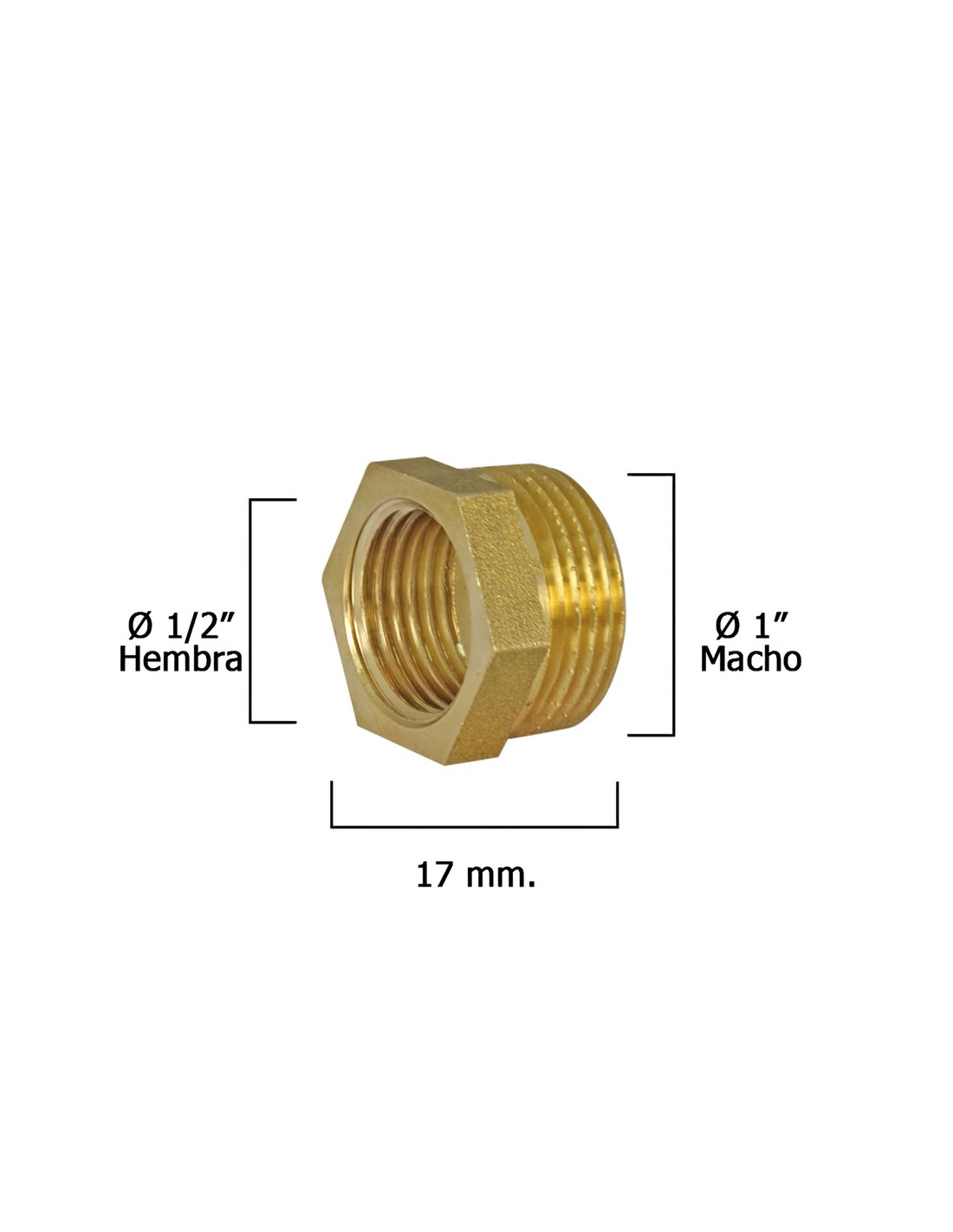Reduccion Hexagonal Pulida 1" Macho x 1/2" Hembra