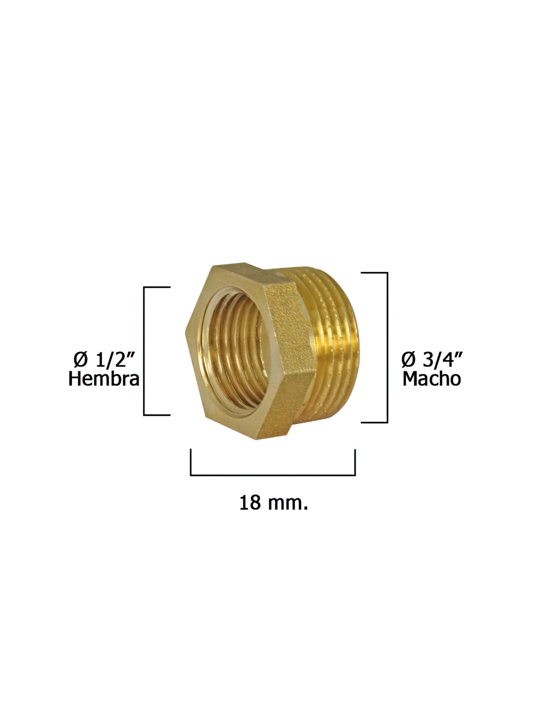 Reduccion Hexagonal Pulida 3/4 Macho x 1/2 Hembra