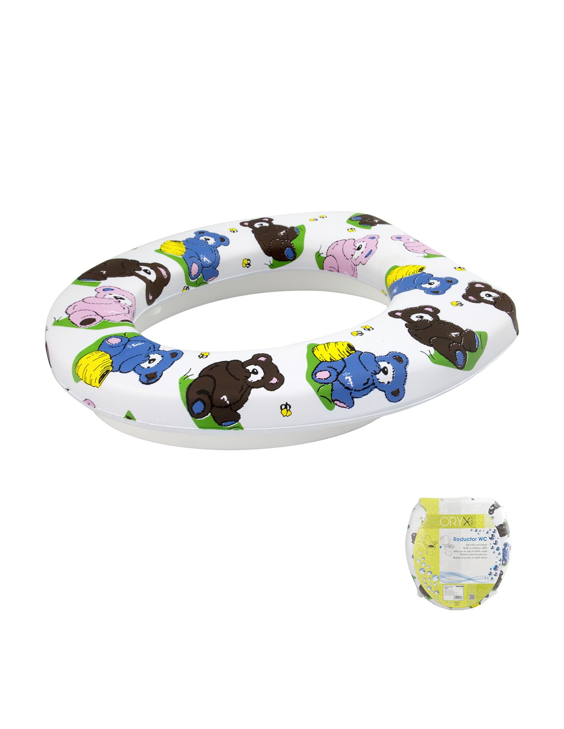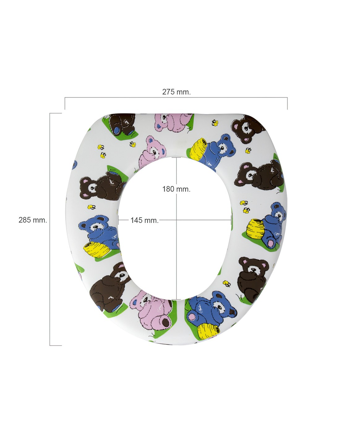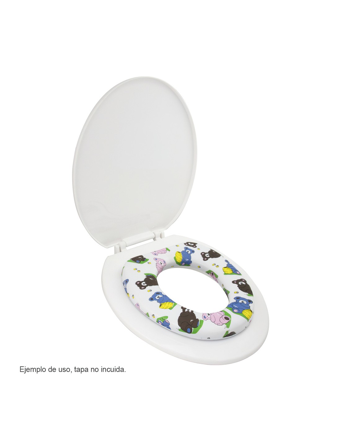Reductor asiento inodoro wc suave para niños - Fabricado en plástico - Acolchado con espuma suave - Medidas 275x285 mm. - Articulo tambien conocido como asiento niños wc, tapa wc niños.