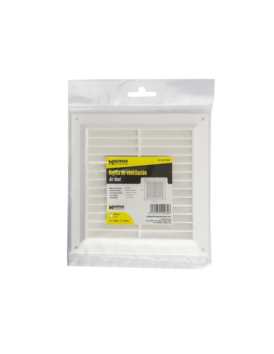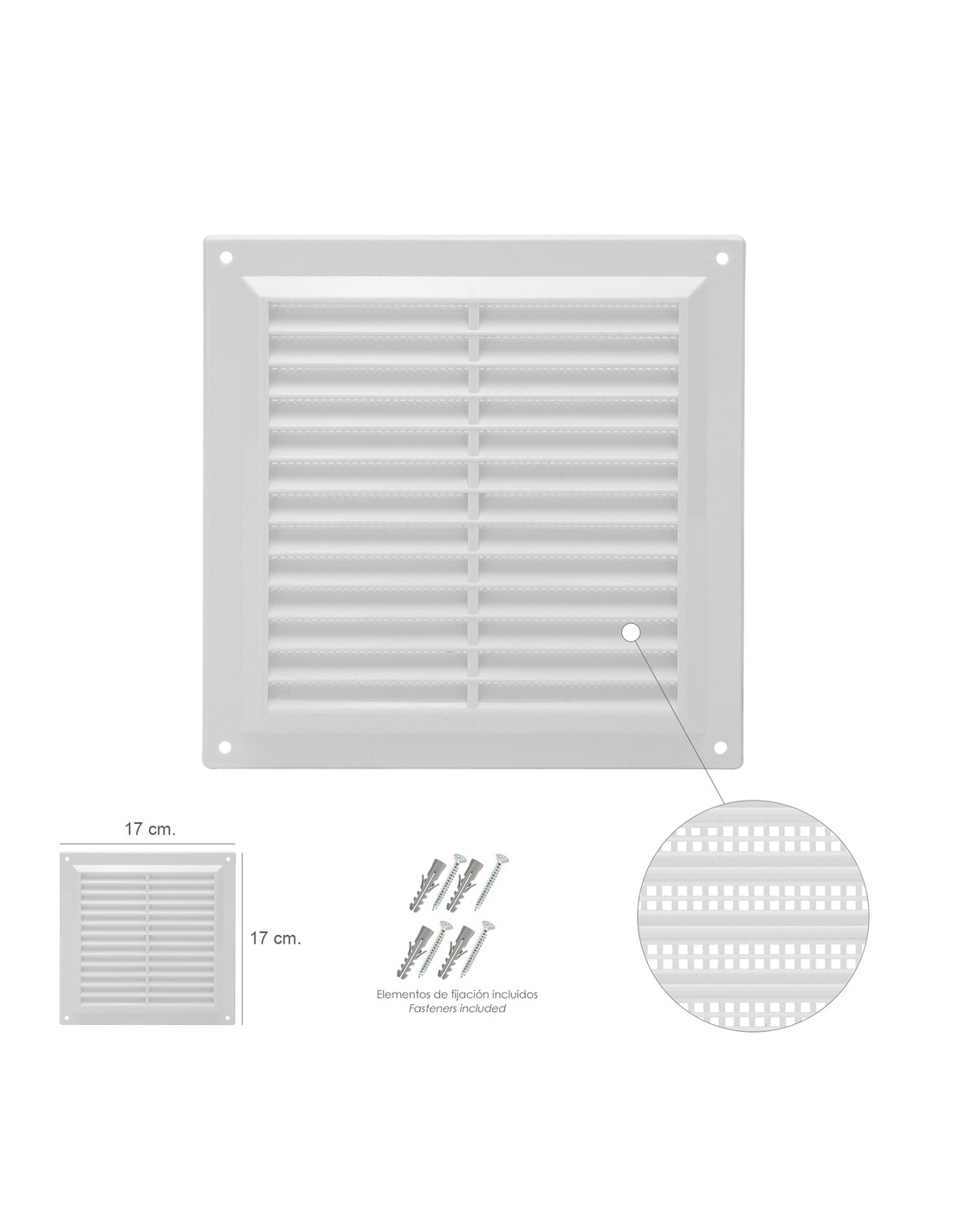 Rejilla Plastico Sobreponer Con Malla Posterior 17x17 cm.
