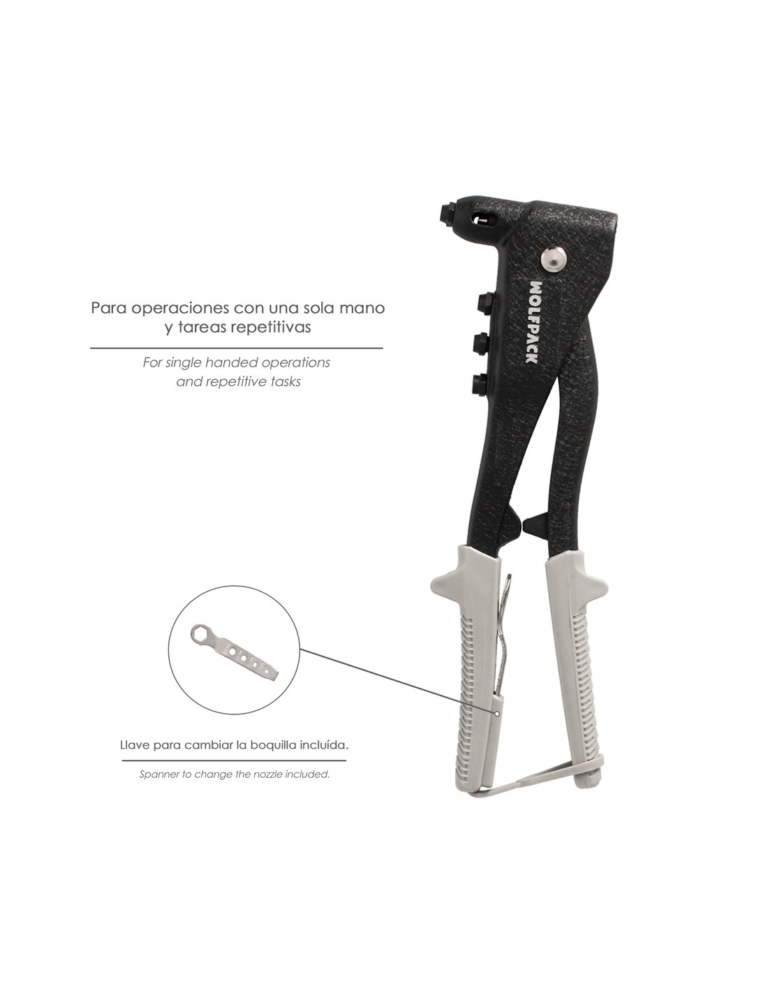 - Incluye una llave para cambiar las boquillas de forma rapida y facil.