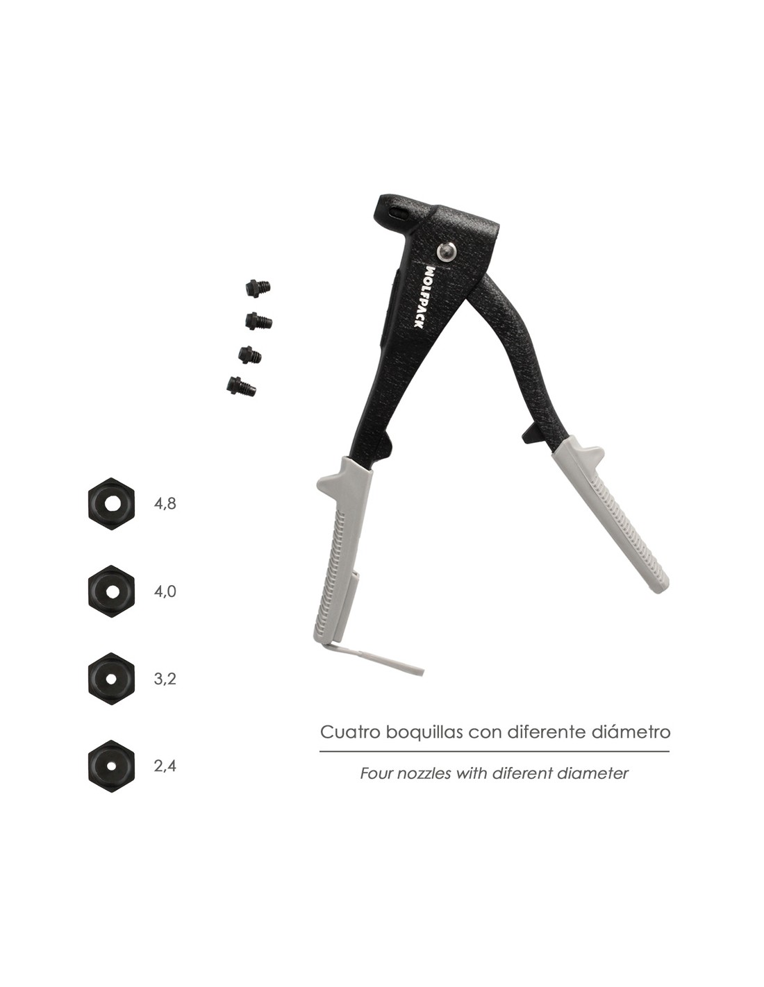- Capacidad: 2,4 / 3,2 / 4,0 / 4,8 mm.