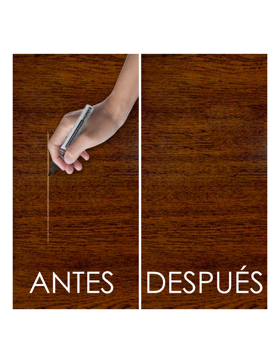 - Articulo conocido como marcador / reparador madera, cera madera, elimina arañazos madera.