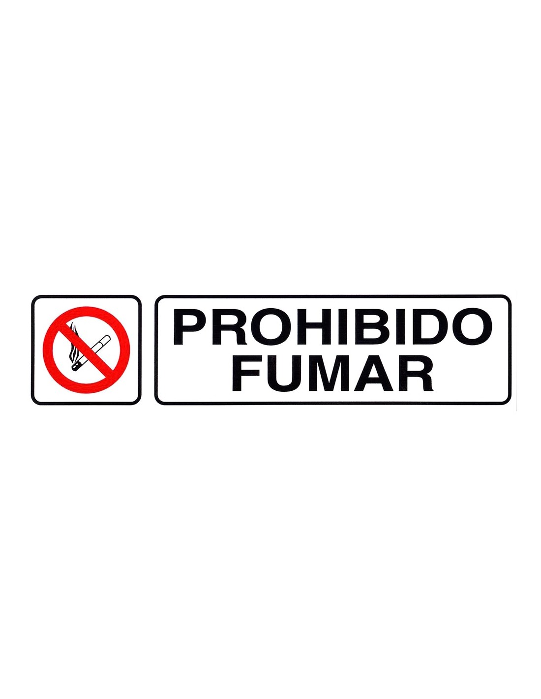 Rotulo adhesivo Prohibido fumar - Medida: 250x63 mm. - Realziado en plastico. - Gran adherencia sobre la mayoria de las superficies. - Articulo también conocido como: carteles, rotulos, señales.