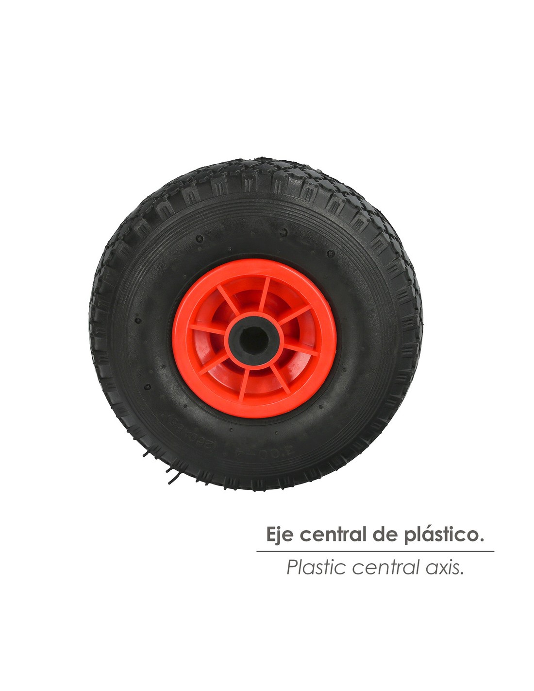 Rueda carretilla sacos neumática llanta plástico.