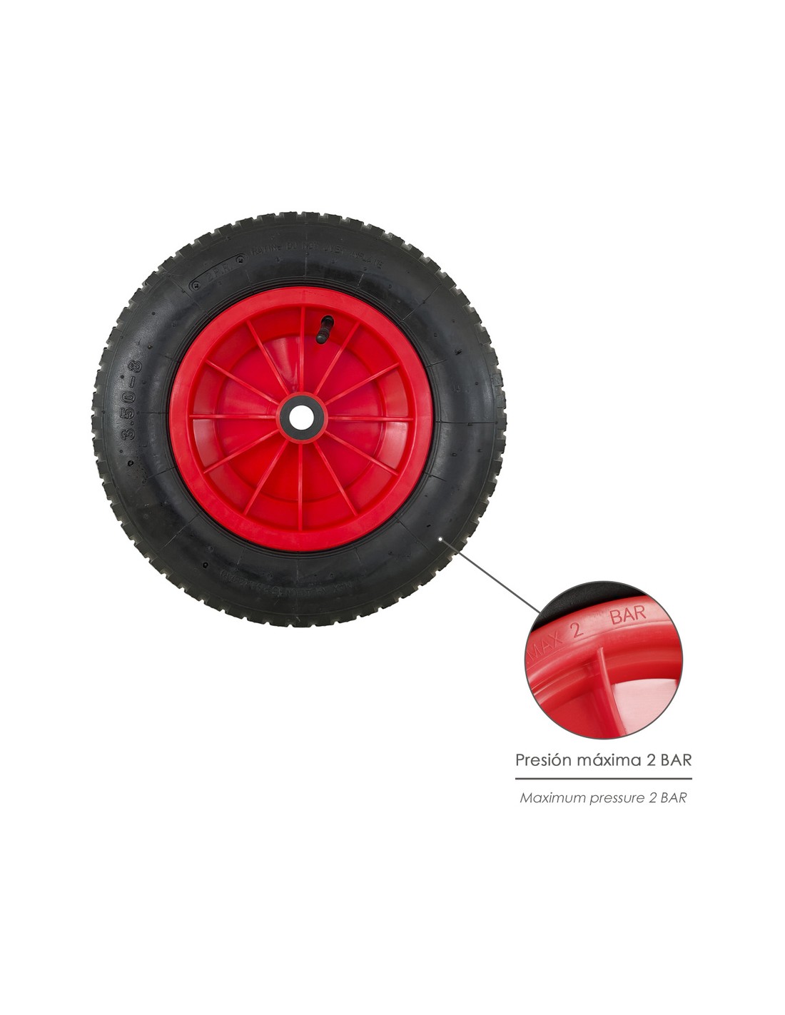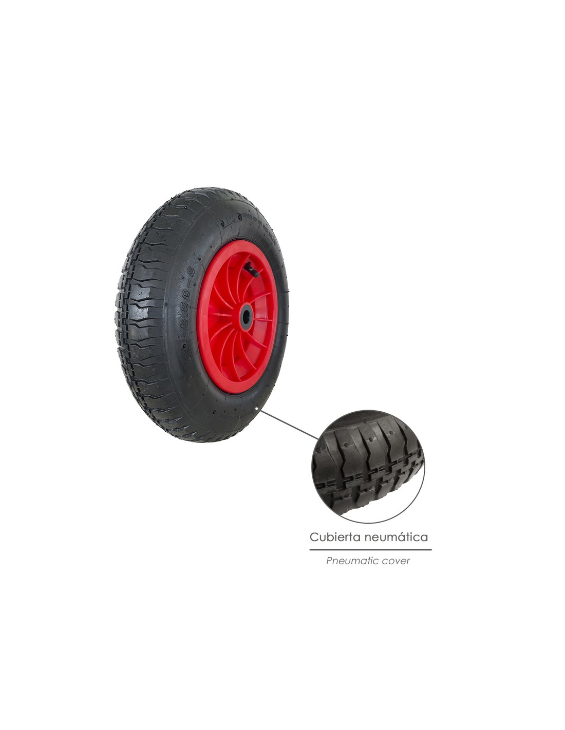 Rueda Carretilla Invernadero Neumática Llanta Plástico, Ø 370 mm. Eje Ø 20 mm.