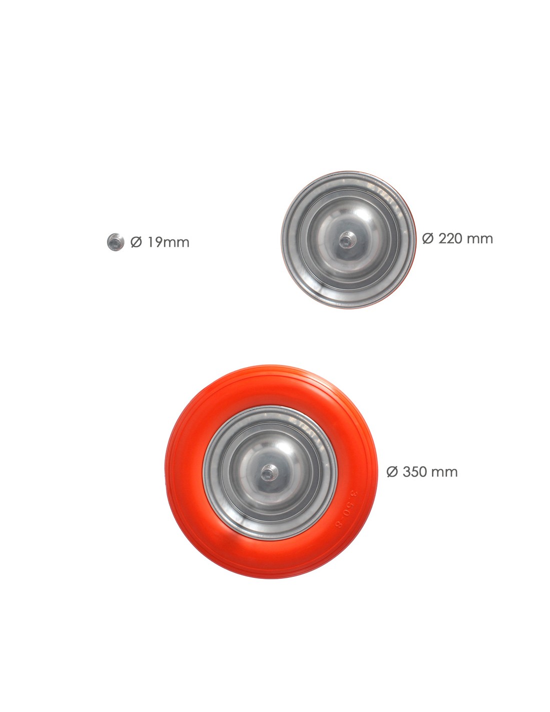 Rueda Carretilla Obra / Jardin Maciza Llanta Acero "Plus" Naranja Impinchable, Rueda Carretilla Con Eje Ø 19 mm Rueda Ø 35 cm