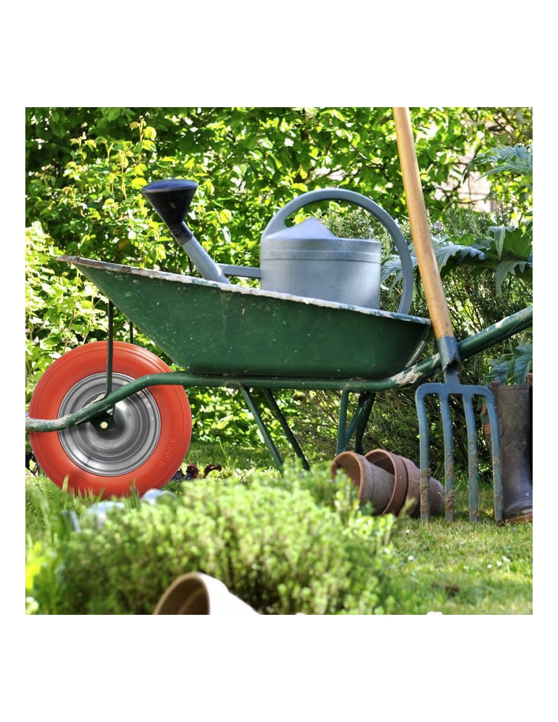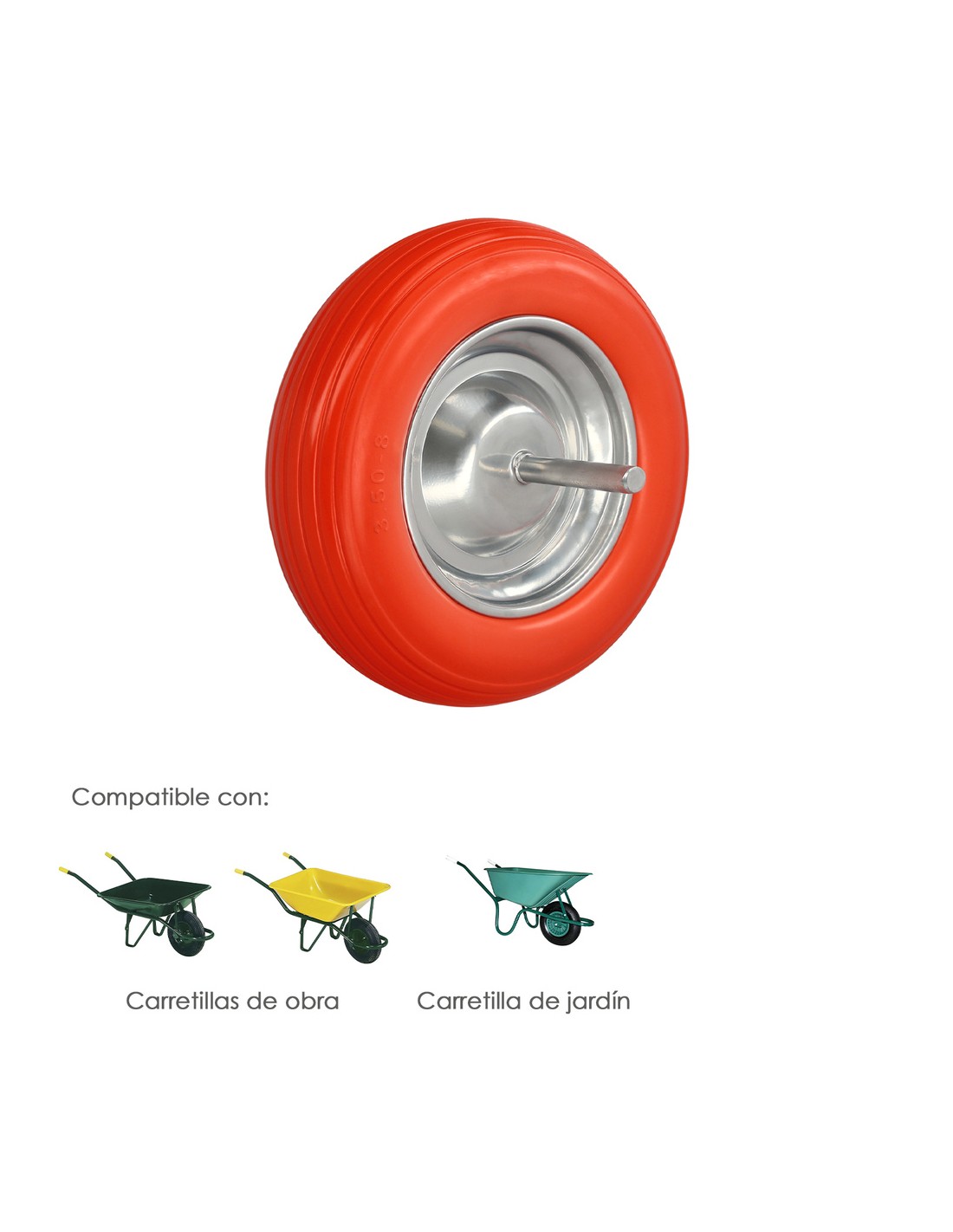 - Articulo conocido como rueda carretilla, rueda carretilla jardin, rueda carretilla obra, rueda impinchable, rueda antipinchazos, rueda maciza, rueda carretilla obra maciza, rueda carretilla con eje.