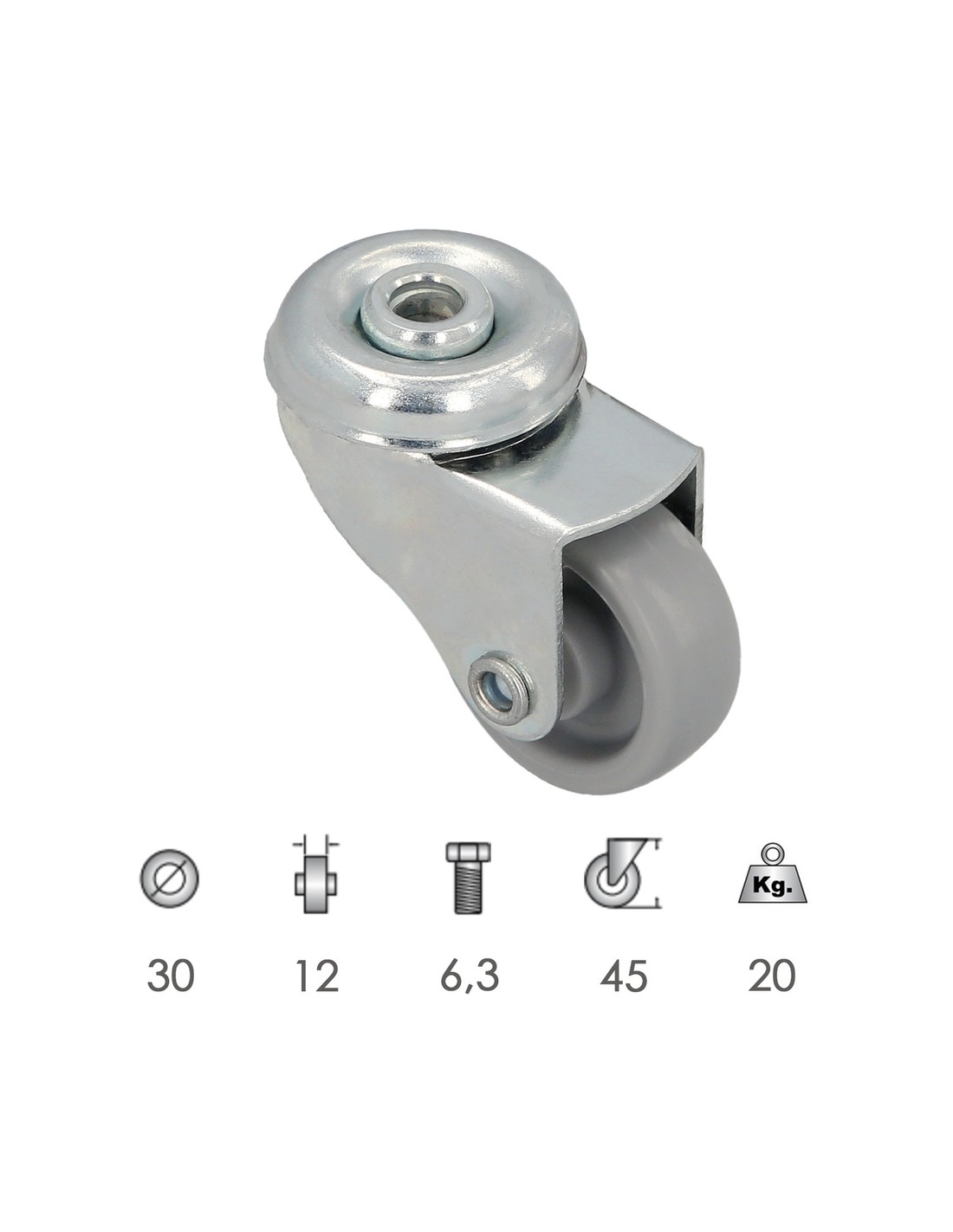Rueda Domestica Ø 30 mm. Agujero Pasante Ø 6,3 mm.