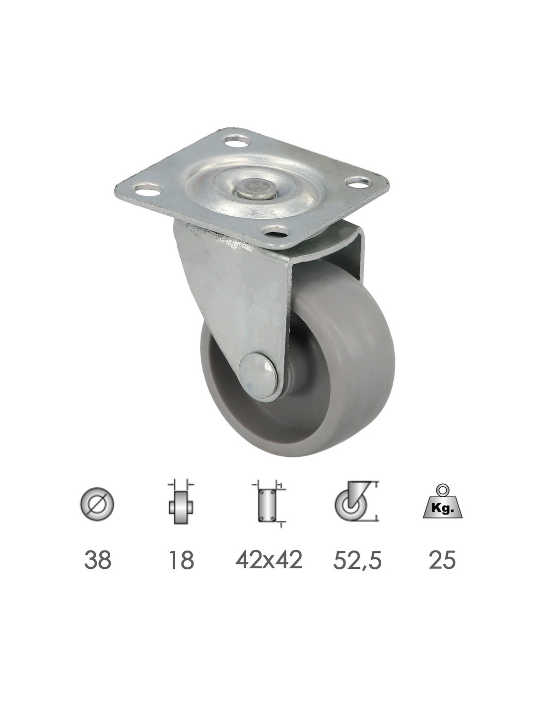 Rueda Domestica Ø 38 mm. Con Placa 42x42 mm.