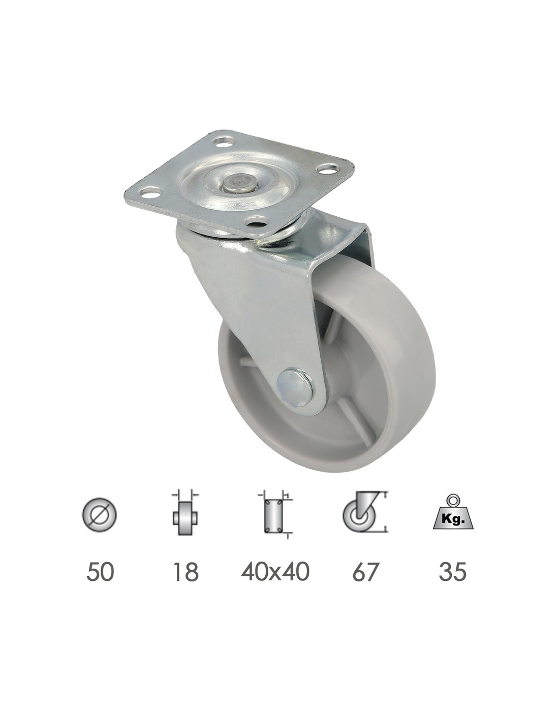 Rueda Domestica Ø 50 mm. Con Placa 40x40 mm.